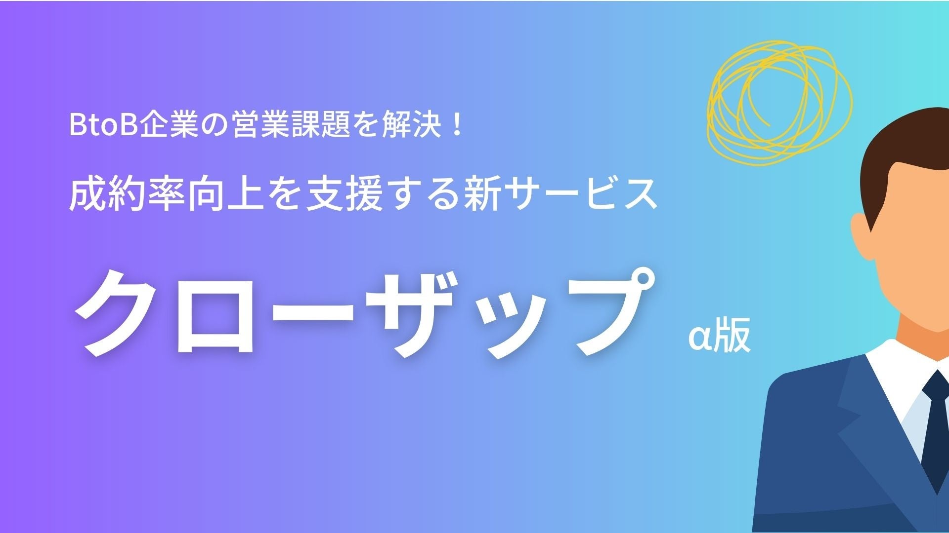 新サービス「クローザップ」は、成約率の低下に悩むBtoB企業に向けたサービスです。成約率低下の原因を明らかにし、成約率向上に必要な支援を行います。