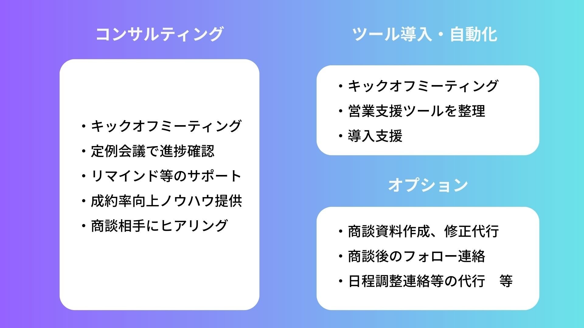 ・商談後のフォロー連絡、日程調整連絡等の代行 等
