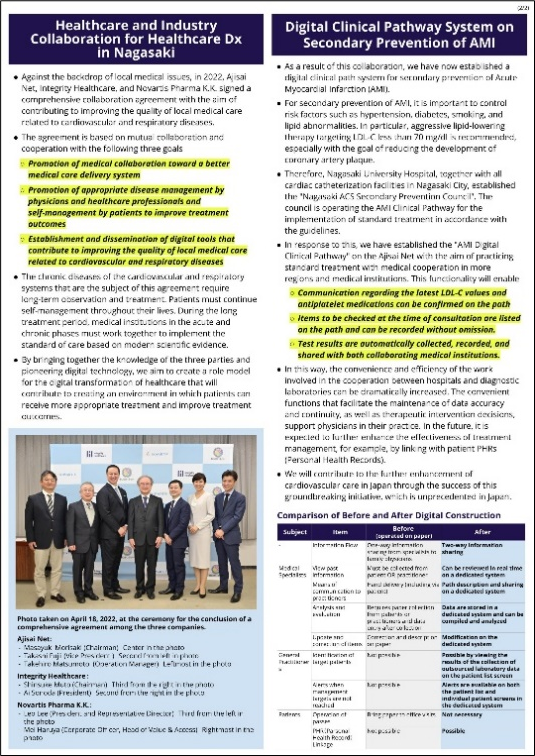 あじさいネット、インテグリティ・ヘルスケア、ノバルティス ファーマの3者包括連携協定、心筋梗塞の二次予防に向けて新たな一歩を達成 ~長崎ACS二次予防協議会作成の急性心筋梗塞二次予防クリニカルパス機能を構築~