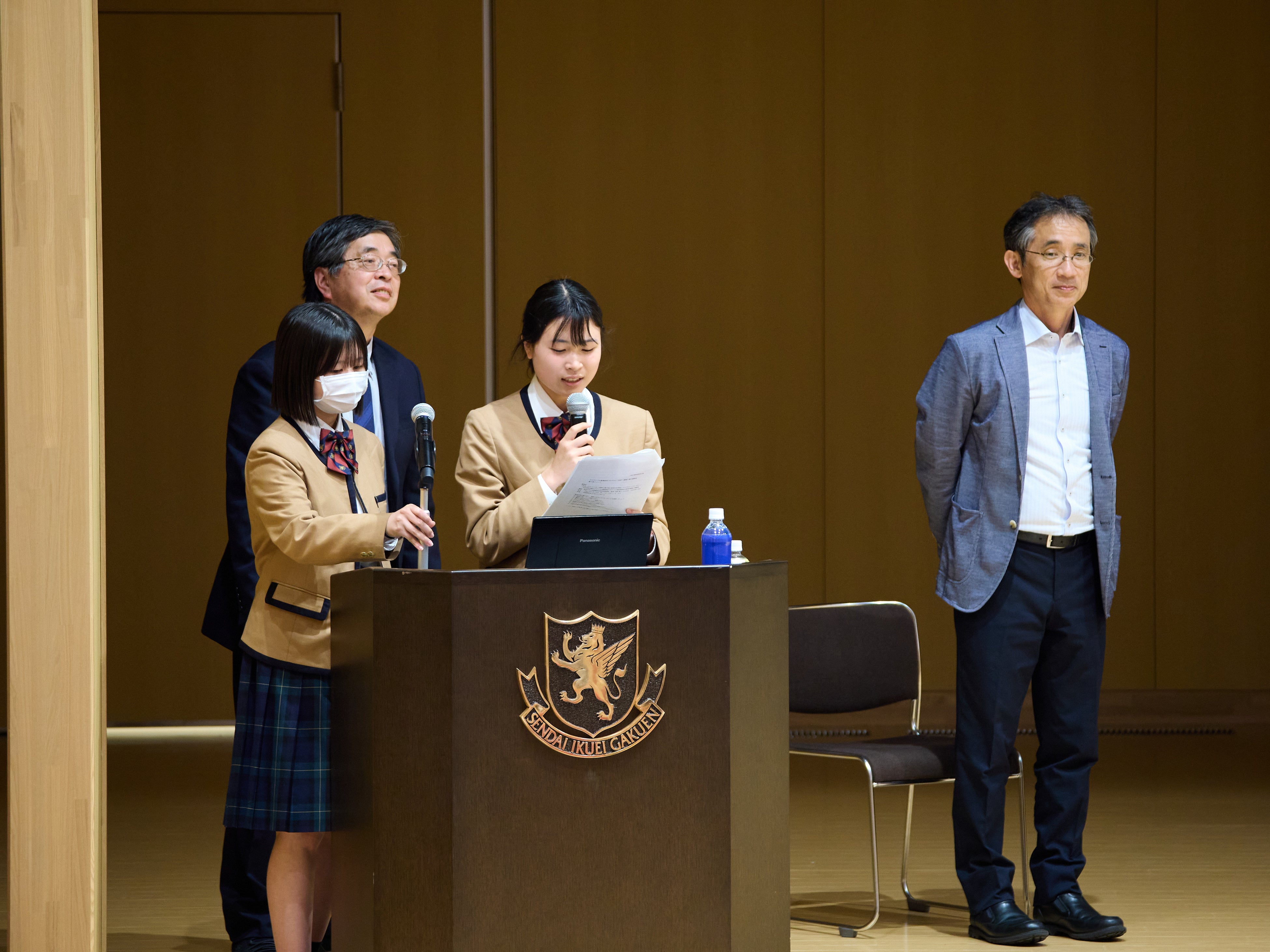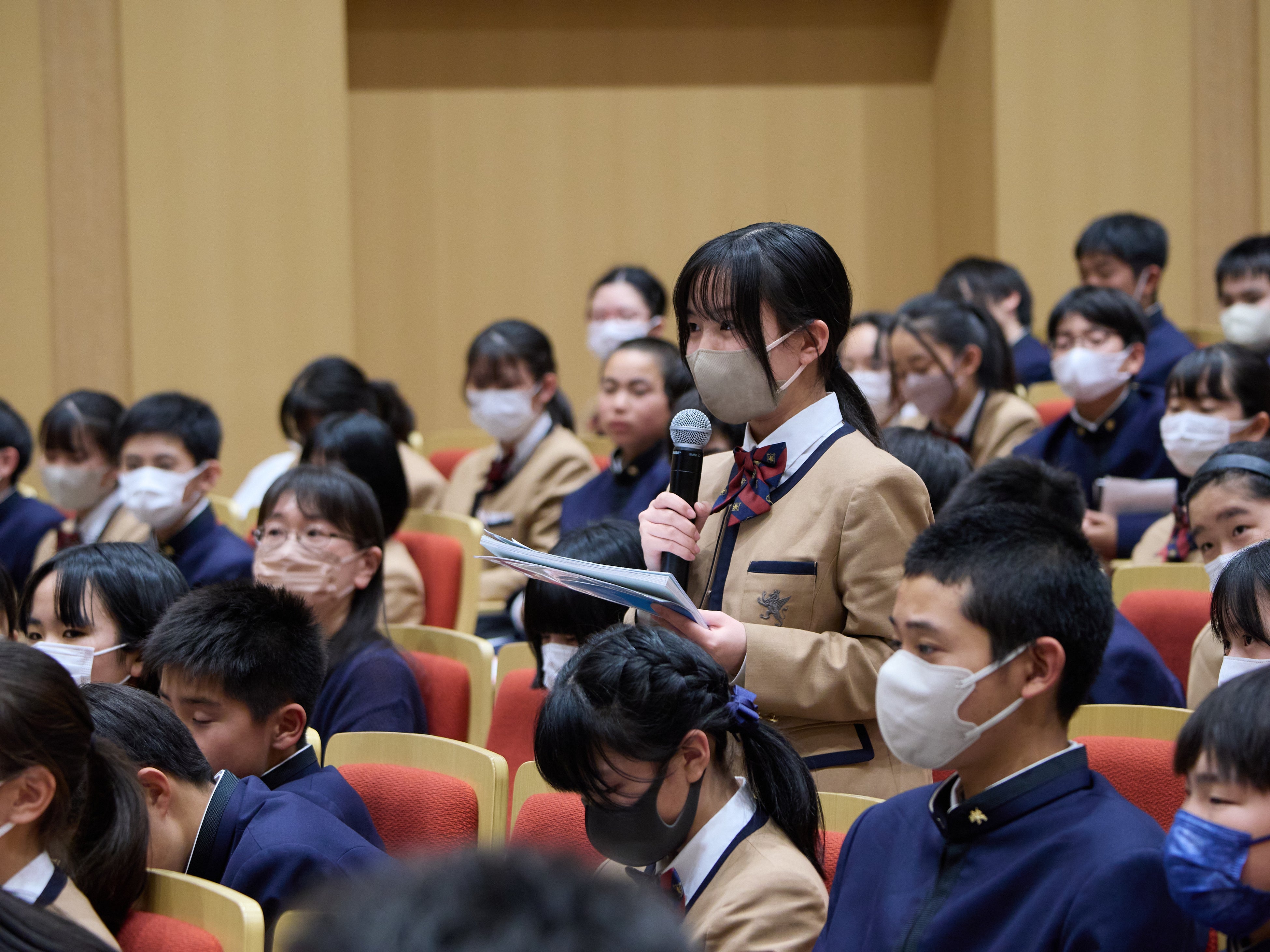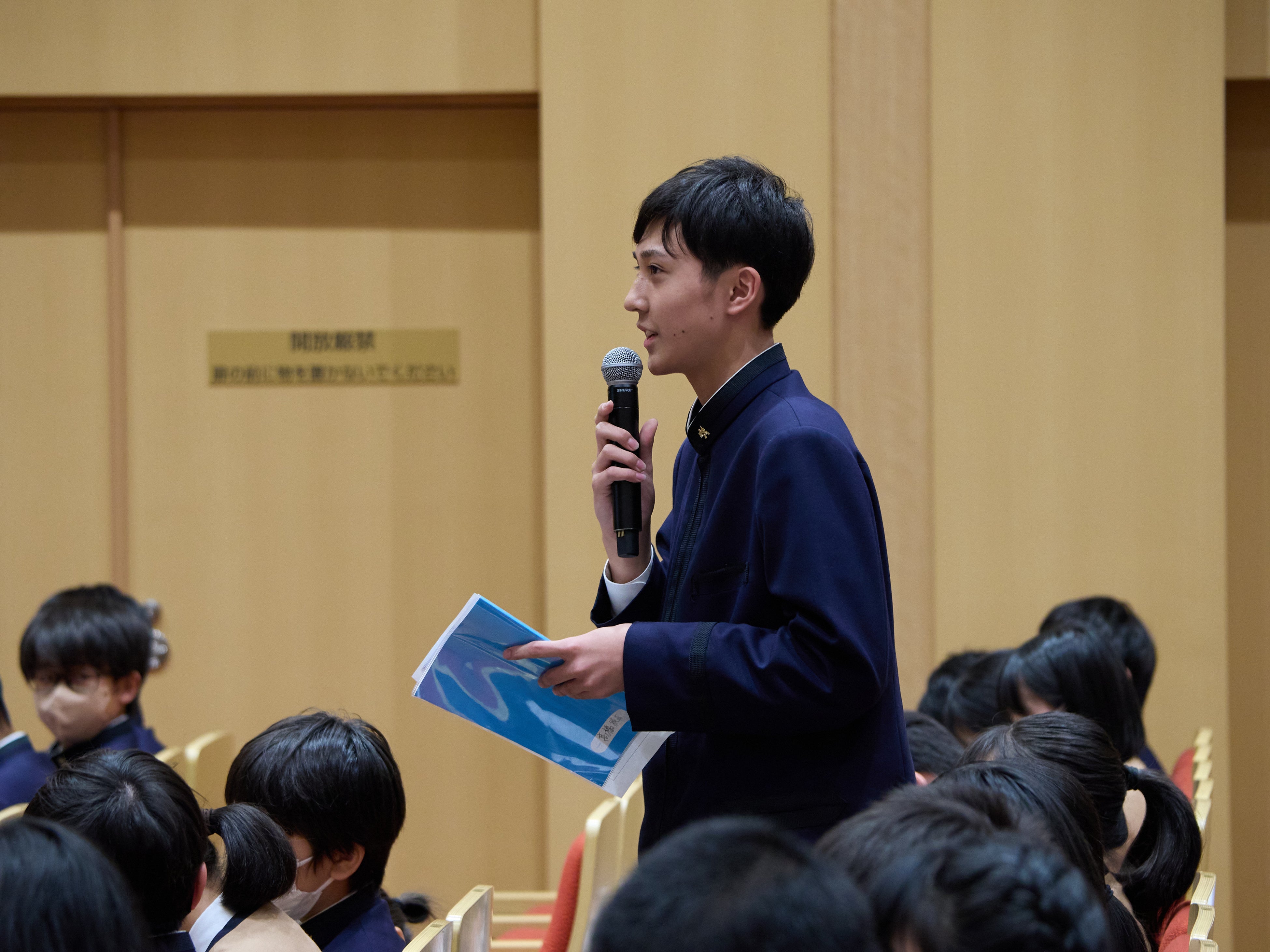 また、講演会の司会進行は秀光中学校の生徒会長・副会長の2名が務めた。