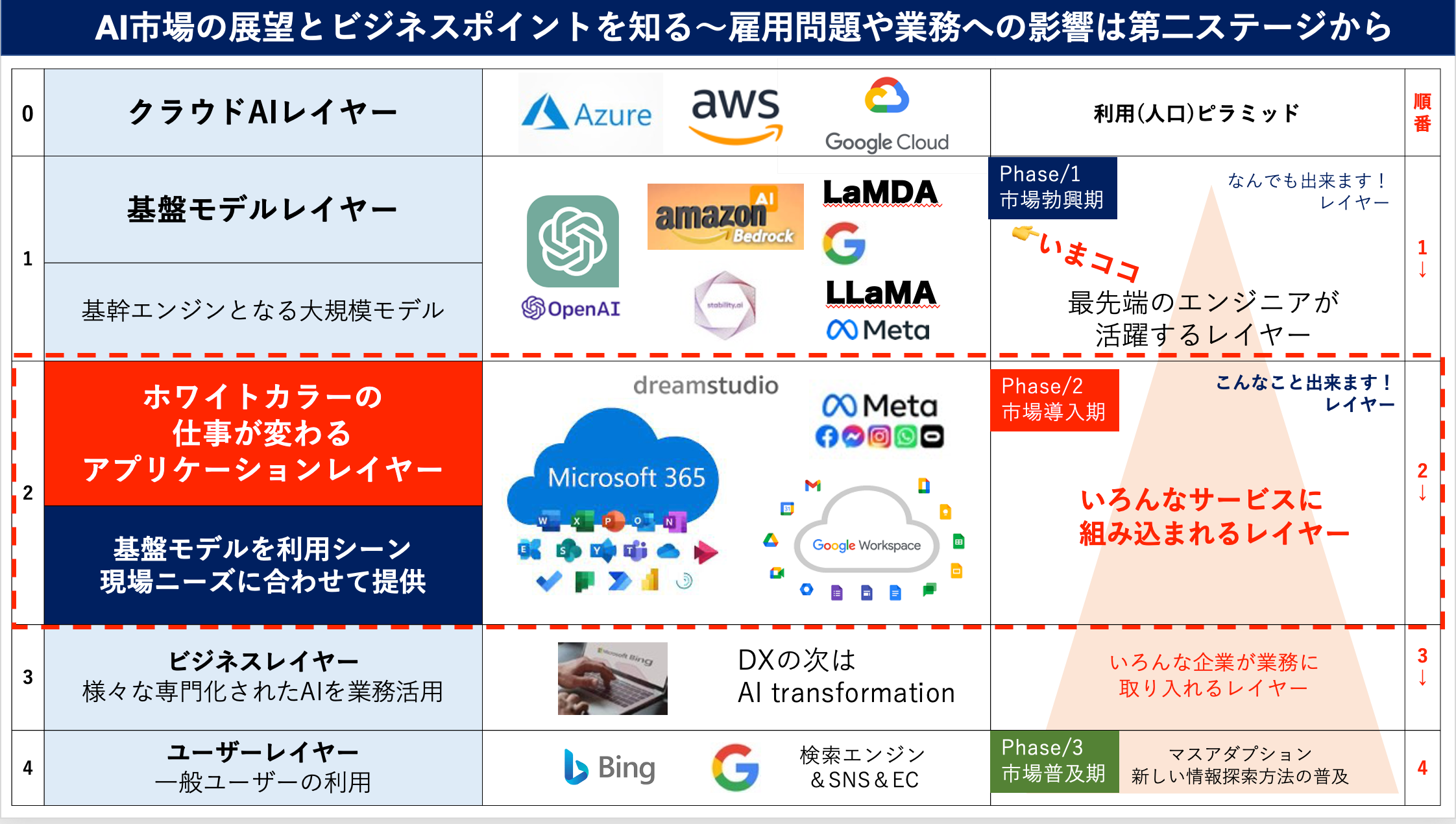 セミナーの内容は5つの構成で成り立っており、市場の今後の動きを天賦のトレンドマップとして整理した上で、時系列にAI普及が見込まれる近未来を予測する内容となっています。