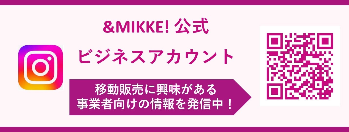 また、移動販売に興味のある事業者様向けに「&MIKKE!公式ビジネスアカウント」を開始しており、さまざまな出店者事例の写真付きでの紹介や、キャンペーン情報などを発信しております。是非フォローをお願いします。