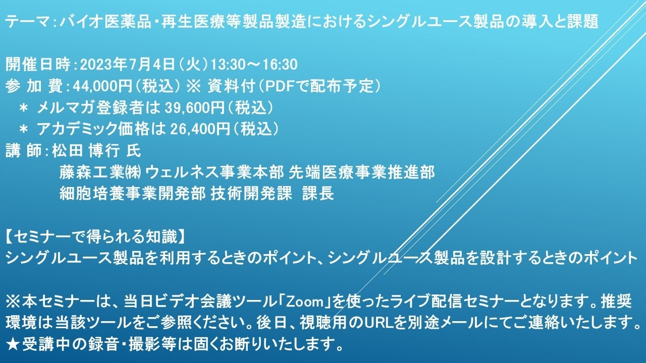 ※ 本セミナーは、当日ビデオ会議ツール「Zoom」を使ったライブ配信セミナーとなります。推奨環境は当該ツールをご参照ください。後日、視聴用のURLを別途メールにてご連絡いたします。