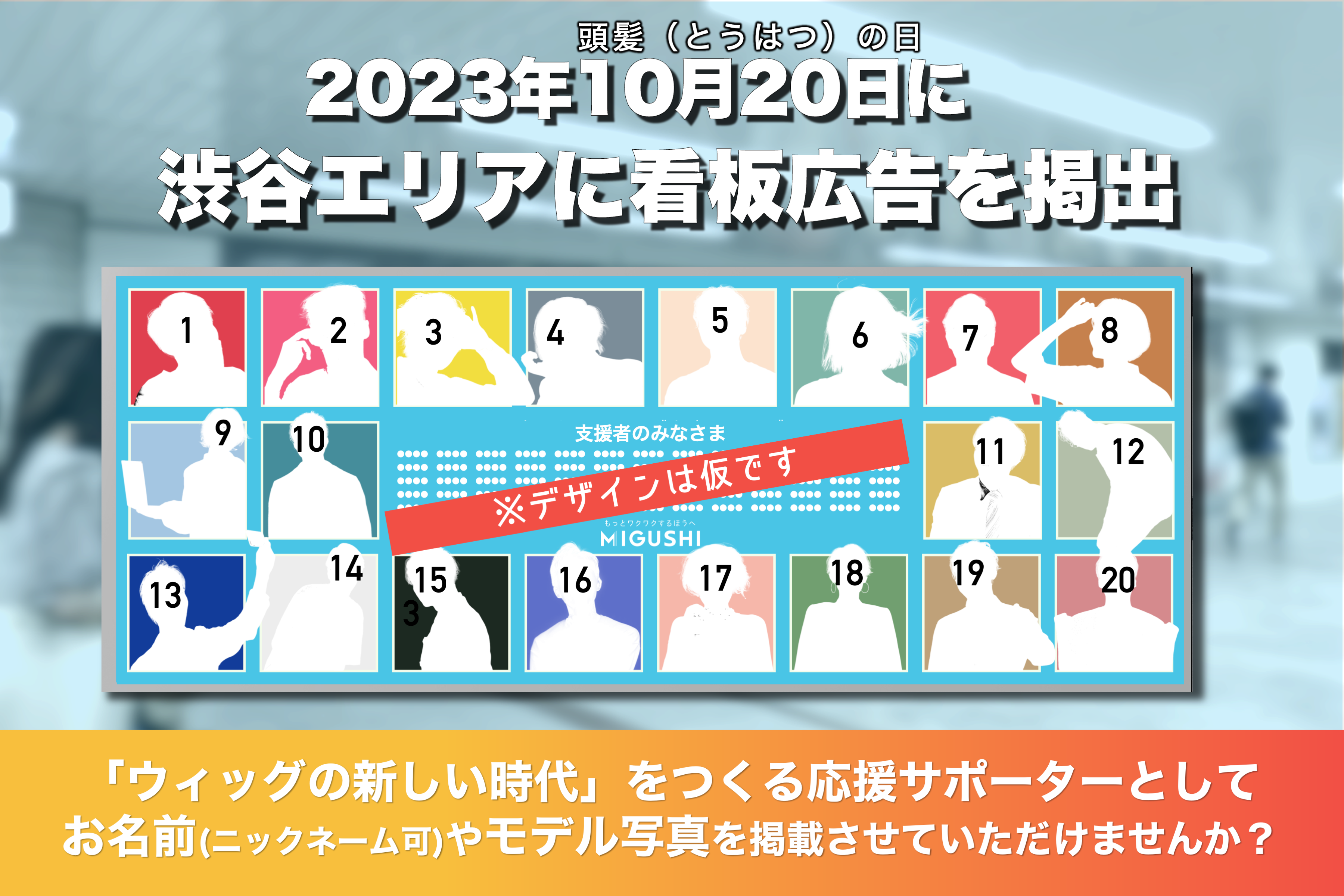 今回、来る10月20日に渋谷エリアで看板広告の掲出を予定しており、その広告に出演いただけるウィッグモデル/サポーターをクラウドファンディングで募集するという、業界初のプロジェクトを開始しました。