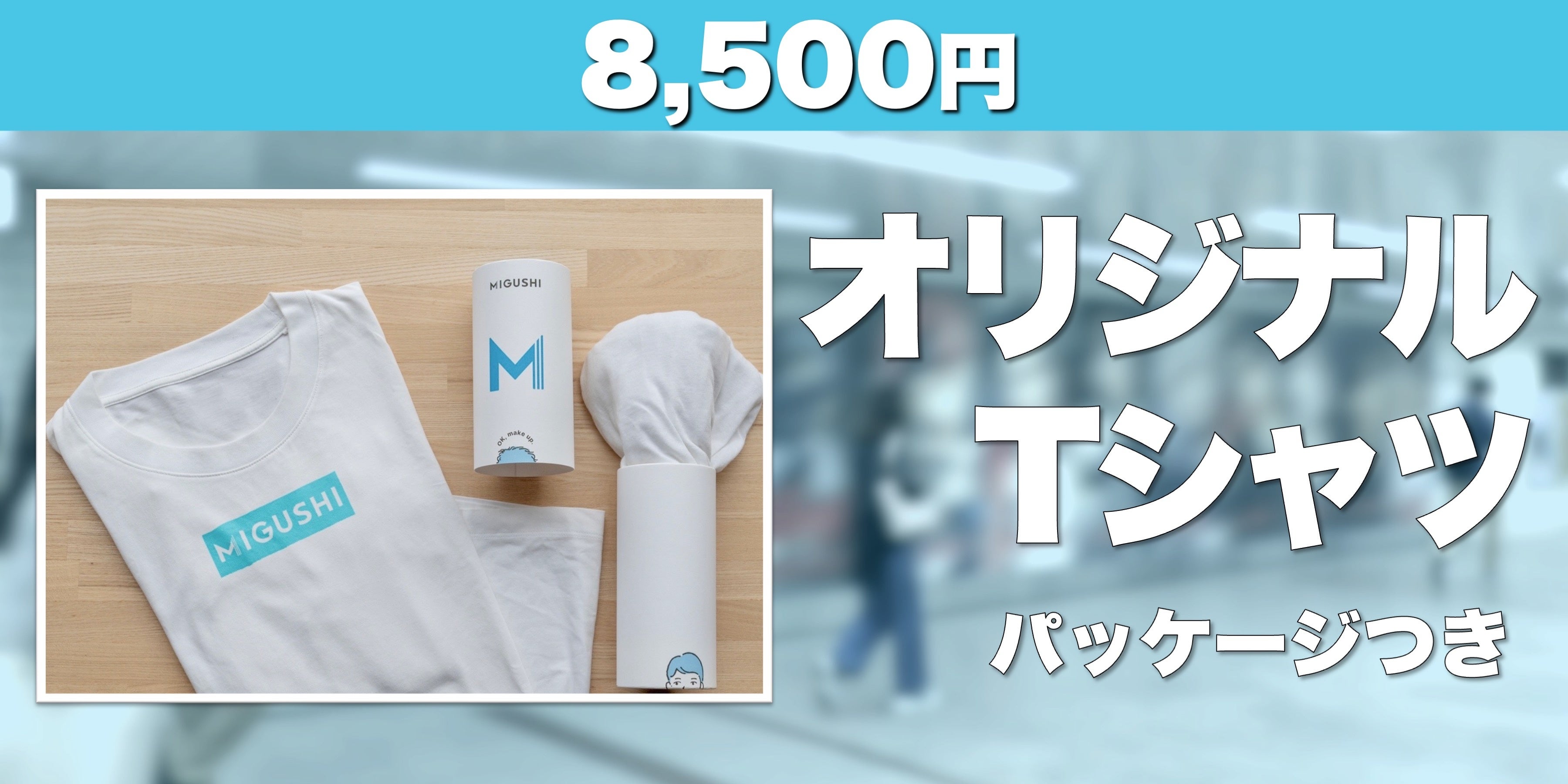 MIGUSHIロゴが入ったオリジナルTシャツを、MIGUSHIパッケージに入れてお届けします。