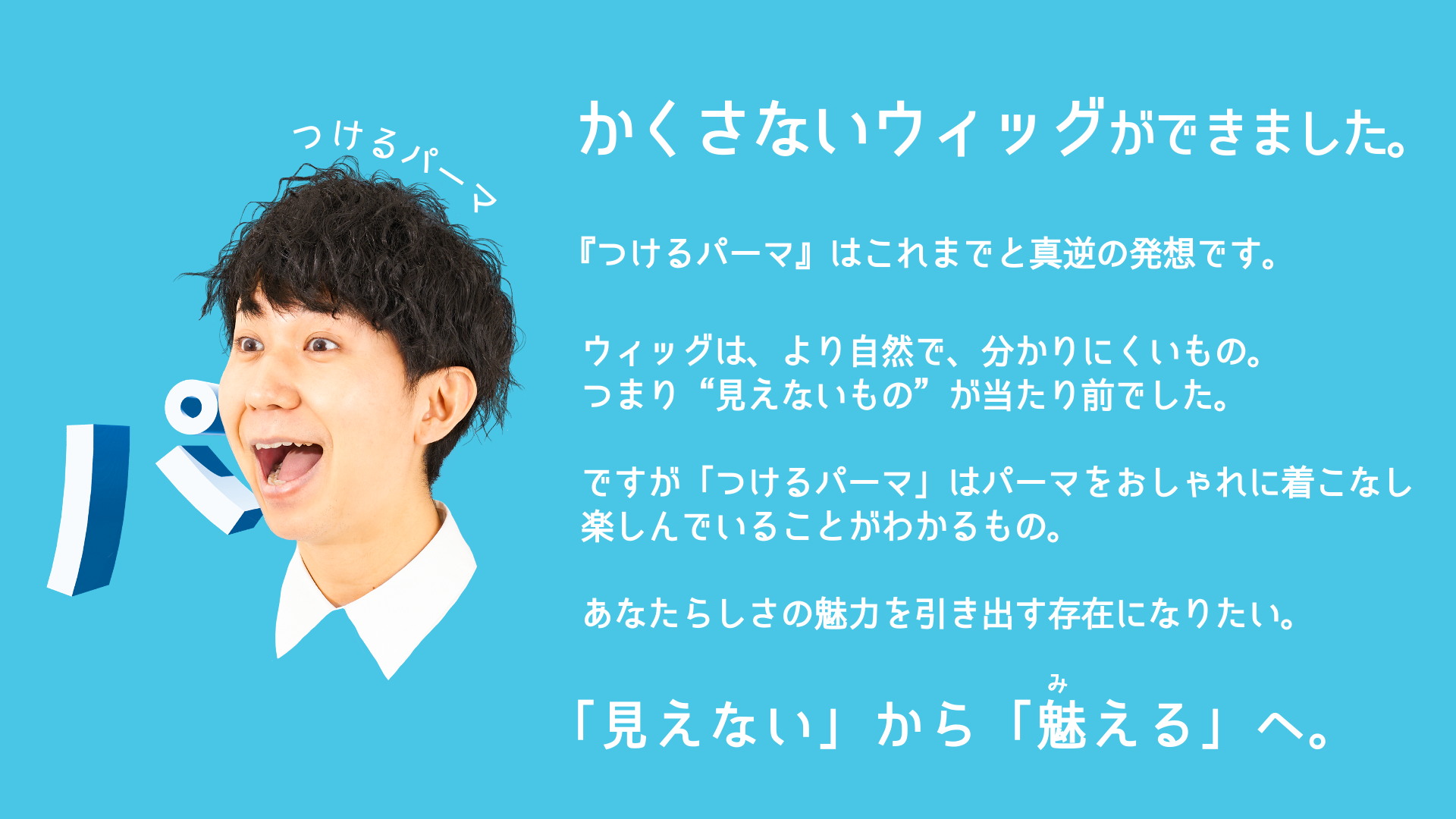 かくさないウィッグというコンセプトの新商品『つけるパーマ』を開発しました。