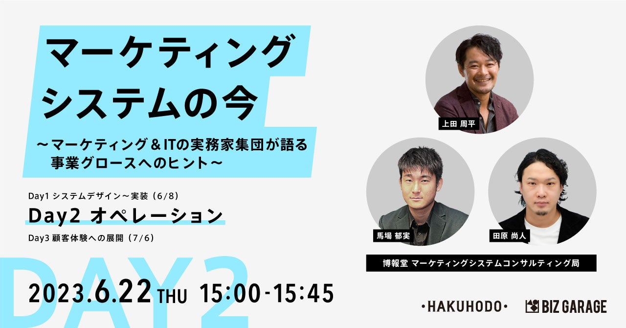 今回のウェビナーは博報堂がマーケティングシステム基盤の構築から利活用、グロース運用化に至る様々なプロジェクトを通じて蓄積してきたナレッジをマーケティングDXへのヒントとしてお伝えし、マーケティング進化のきっかけにして頂く3回シリーズの第2回『「マーケティングシステムの今」~マーケティング&ITの実務家集団が語る事業グロースへのヒント~ DAY2:オペレーション編』。