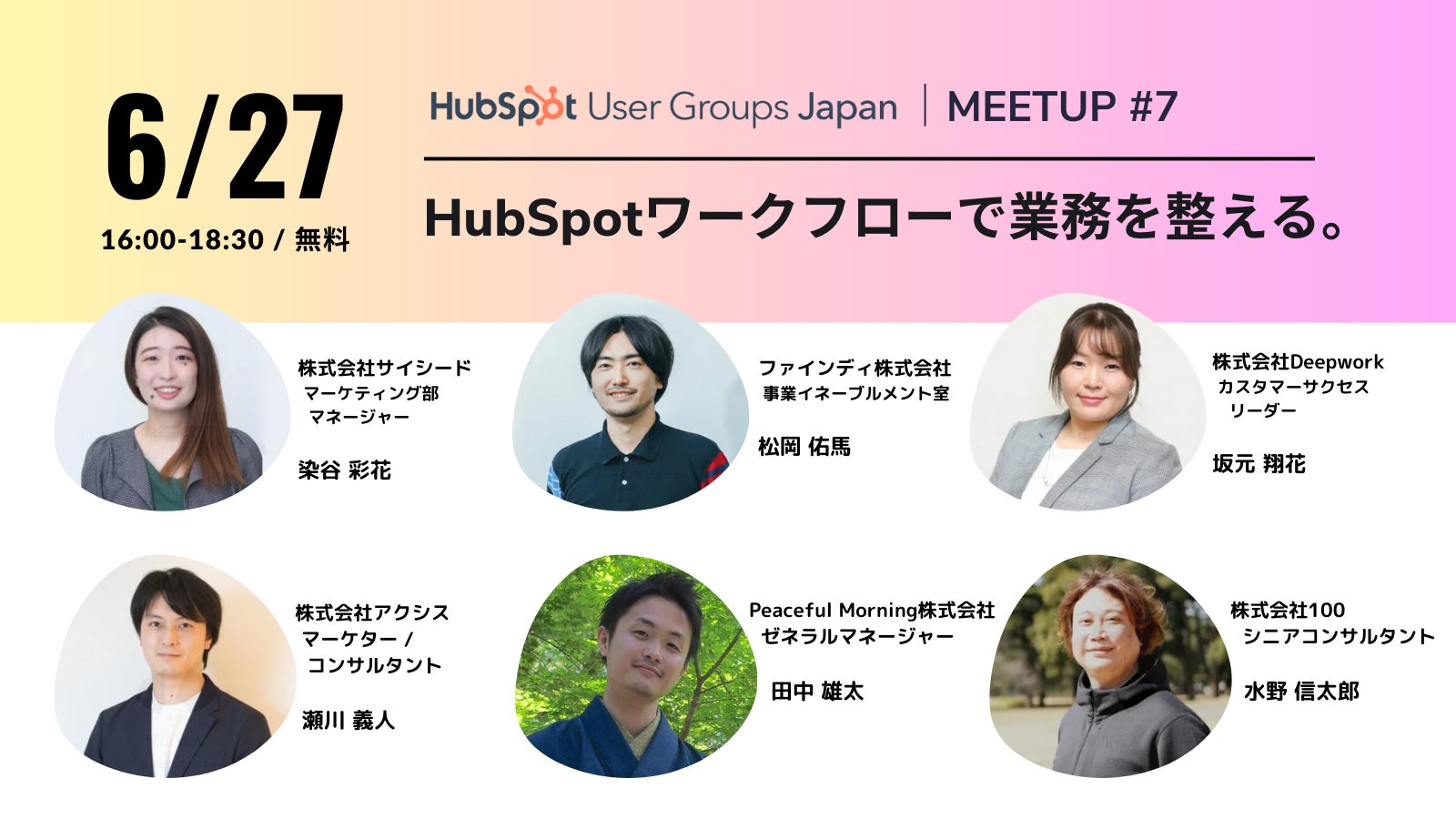 発表タイトル「HubSpotワークフローを活用した、顧客フォローの効率化、自動化について」:HubSpotのワークフロー機能を活用して、時間の密度を高め価値ある時間を増やす取り組みを発表いただきます。