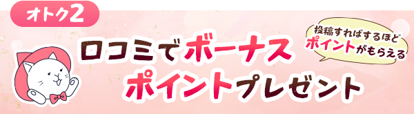 対象期限内に、150文字以上の口コミを投稿したお客様全員にボーナスポイントをプレゼントいたします。あなたがおすすめしたい鑑定者の人柄や魅力、みんなに伝えたいところなどを口コミにご投稿してみませんか。
