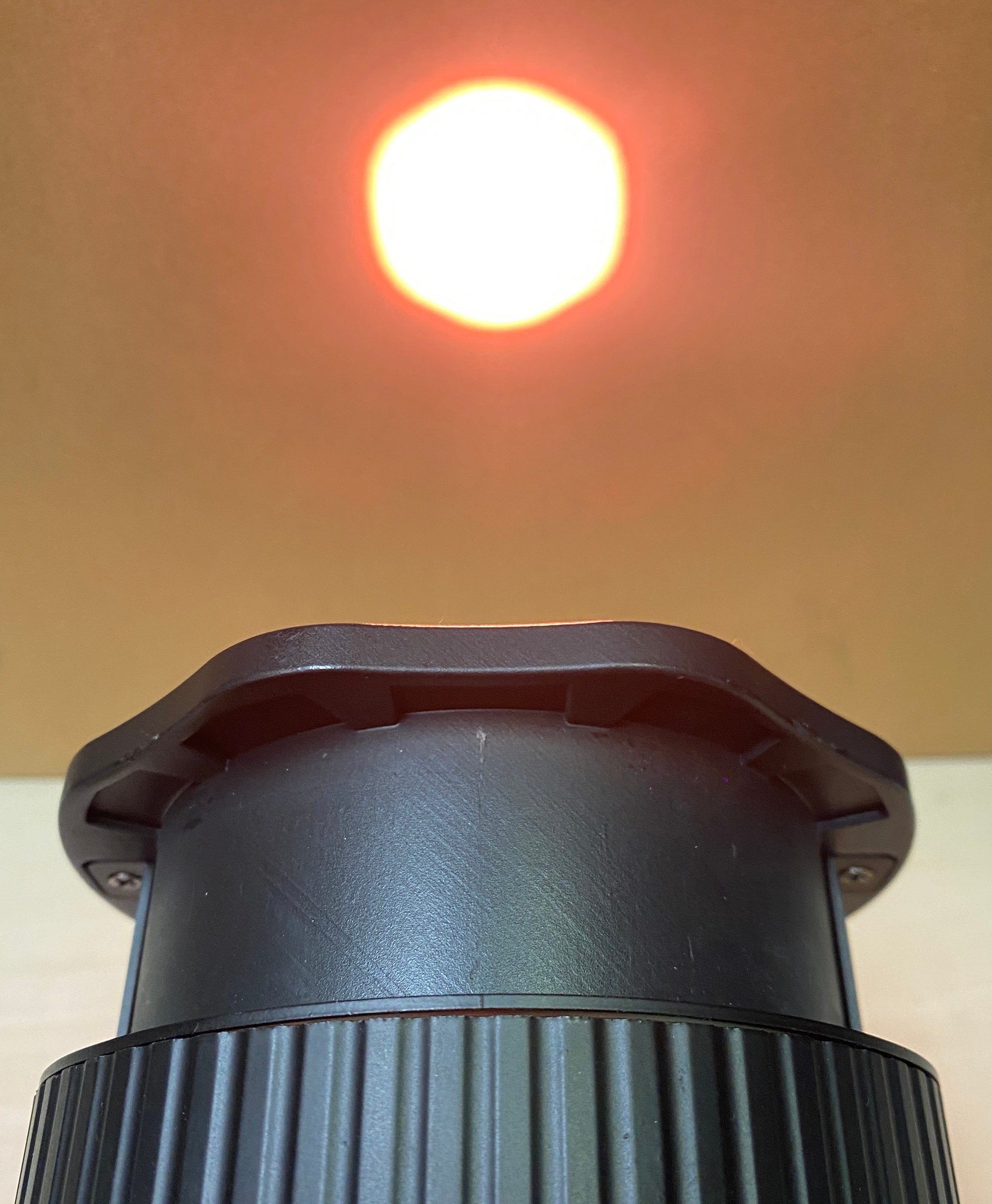 レンズを手動でスライドさせることで、4°の狭角のスポット(光形状4角)から60°のワイド配光まで対応