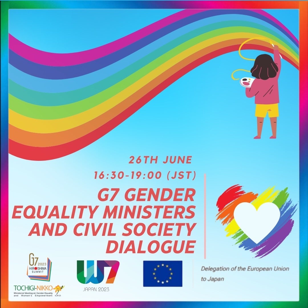 W7 Japan は、2023 年 6 月 24 日・25 日に日光で開催されるG7 男女共同参画・女性活躍担当大臣会合のフォローアップとして、G7 ジェンダー平等担当大臣と市民社会が、ジェンダー平等と女性のリーダーシップ、人権に関する対話を行うためのセミナーを開催します。セミナーでは、ケア・エコノミー、暴力の排除、身体的自律、デジタル技術、LGBTQI+および説明責任などが議論される予定です。