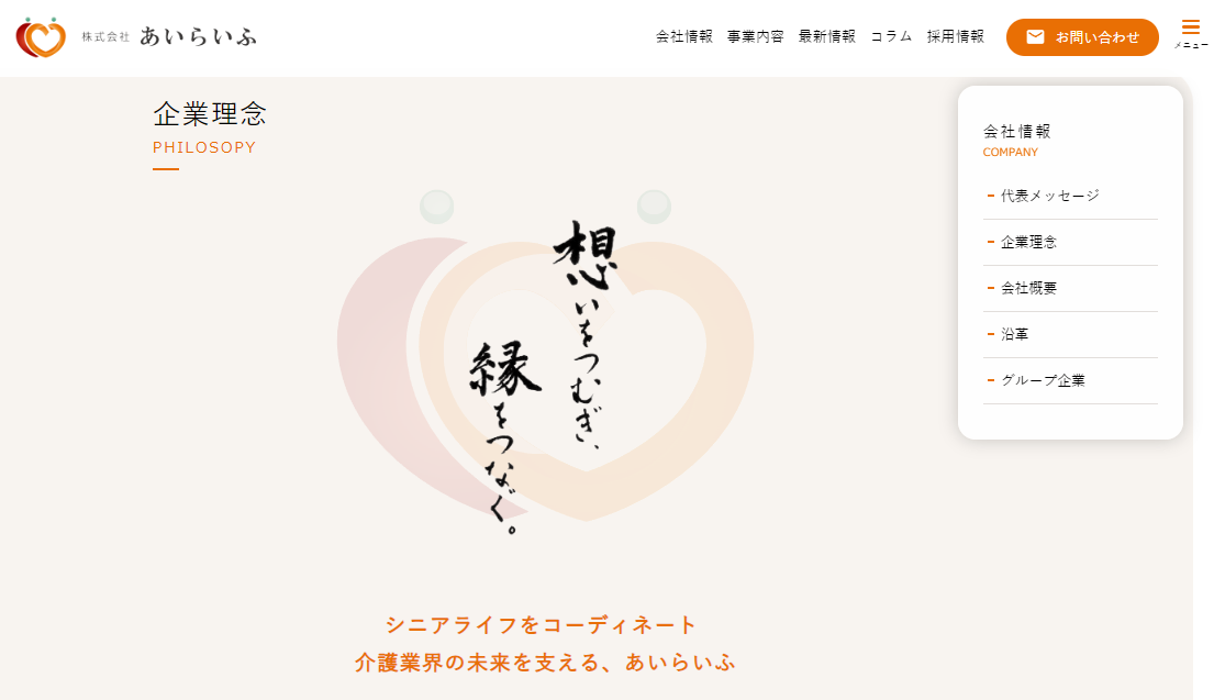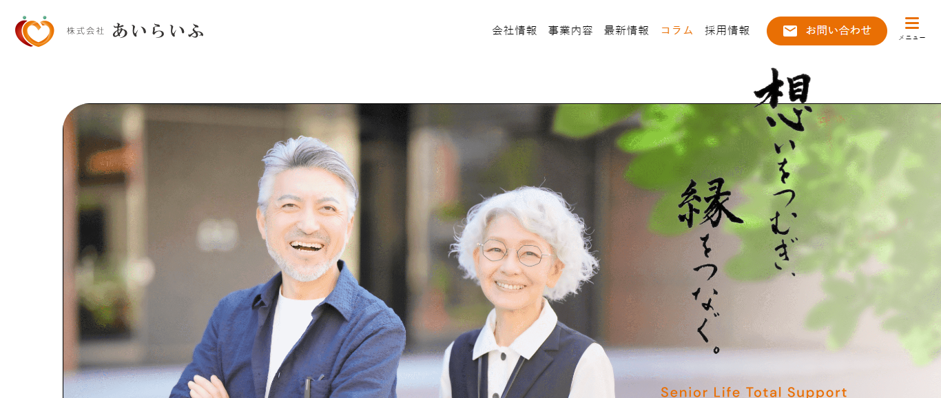あいらいふでは、今後、企業諸活動の発信に加え、高齢期や介護、そして⼈生100年時代を豊かに生きるためのヒントとなるようなコンテンツを発信してまいります。