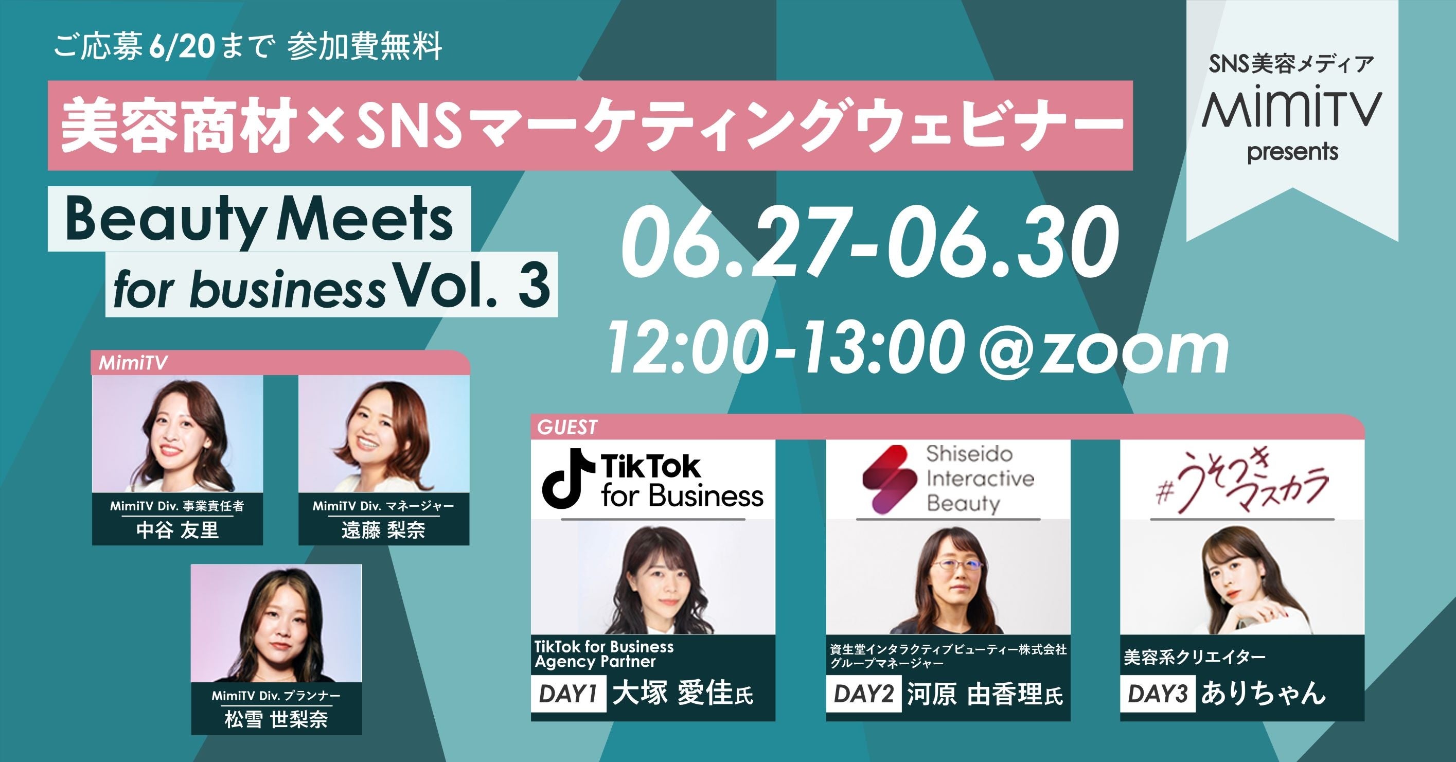 今回もMimiTVが掲げるコンセプト「美容でときめく世界を、一緒に」をテーマに、日々変わる生活者の美容商材における購買行動をゲストとともに解説します。今回は、最新ショート動画のユーザー動向について詳しいTikTok for BusinessやDX化をけん引する資生堂インタラクティブビューティー株式会社、美容系クリエイターありちゃんをお迎えし、様々な切り口から美容マーケティングの今とこれからを語り合います。