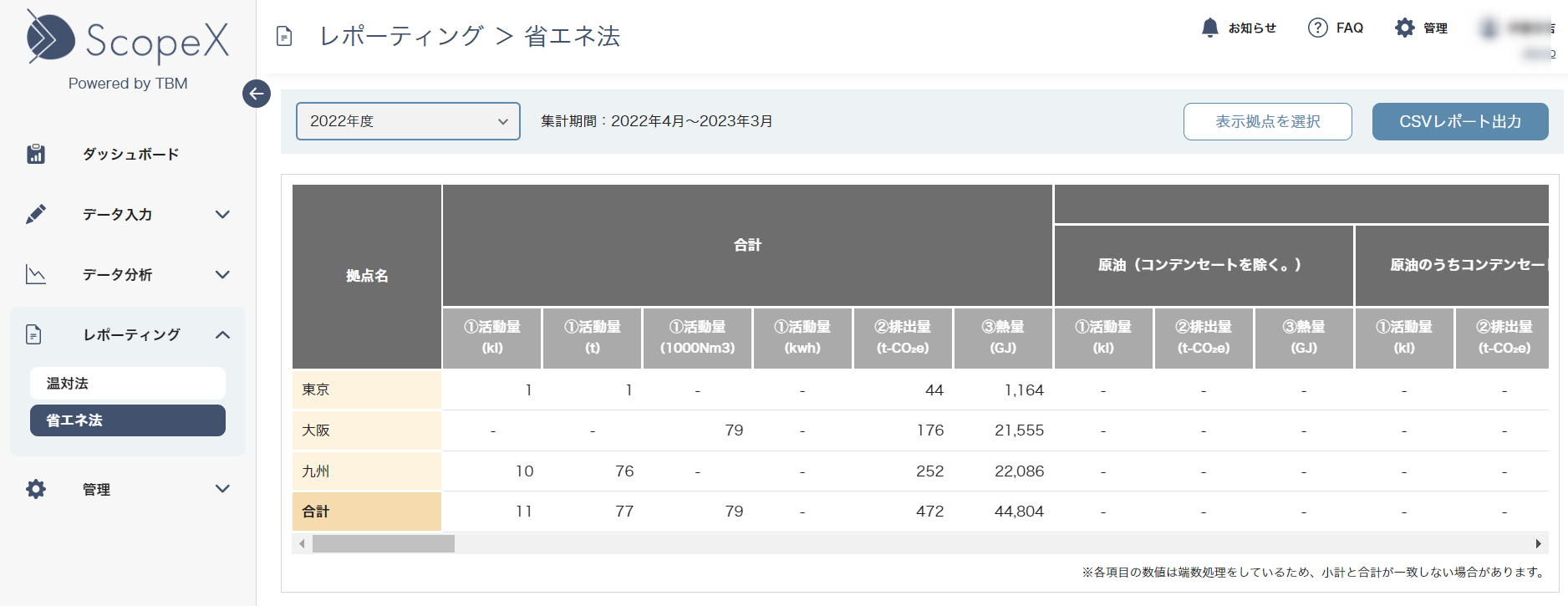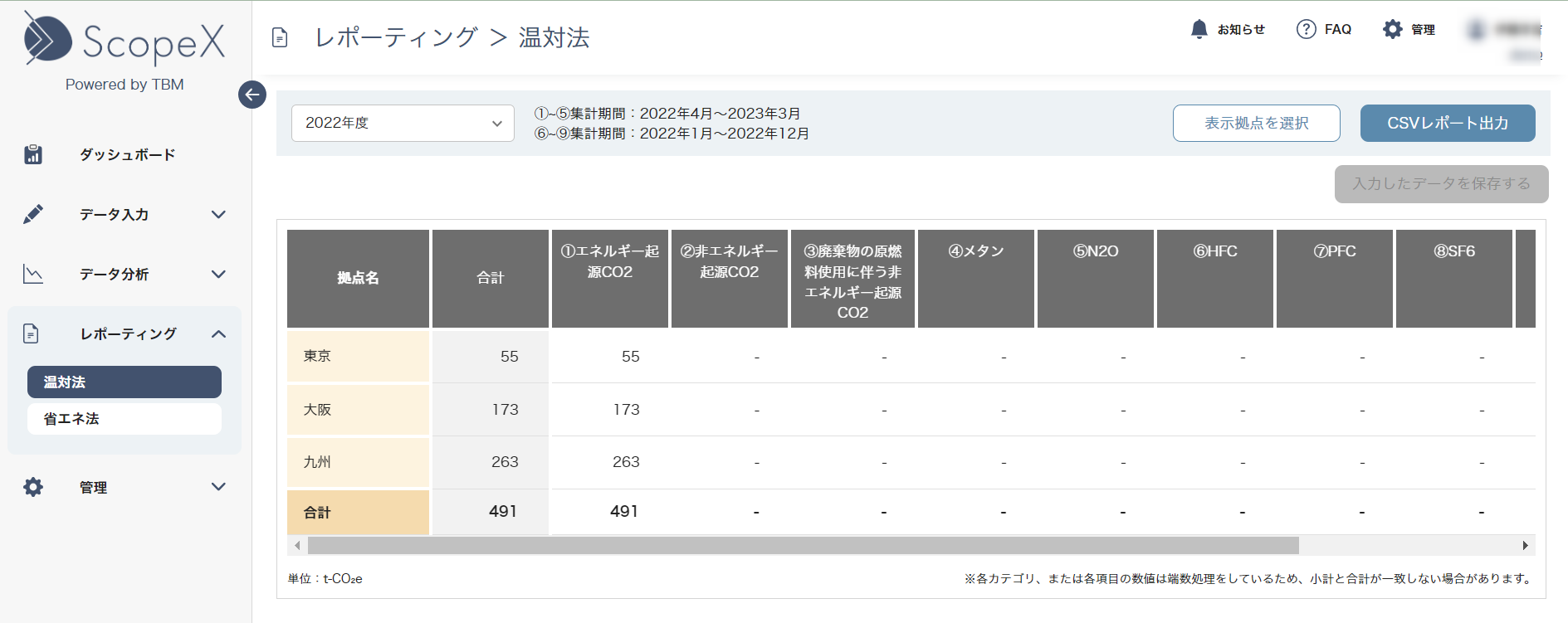 このたびScopeXに追加されたEEGS対応のレポート機能では、これまで省エネ法・温対法のレポート作成にかかっていた工数の削減を実現しました。これにより、ScopeXに搭載されているGHG排出量の各年度排出量比較等の各種グラフ機能やフィルタリング機能等に加え、レポート機能を組み合わせて活用することで、GHG排出量の算出、可視化、レポート作成までをワンストップで実施できるようになりました。