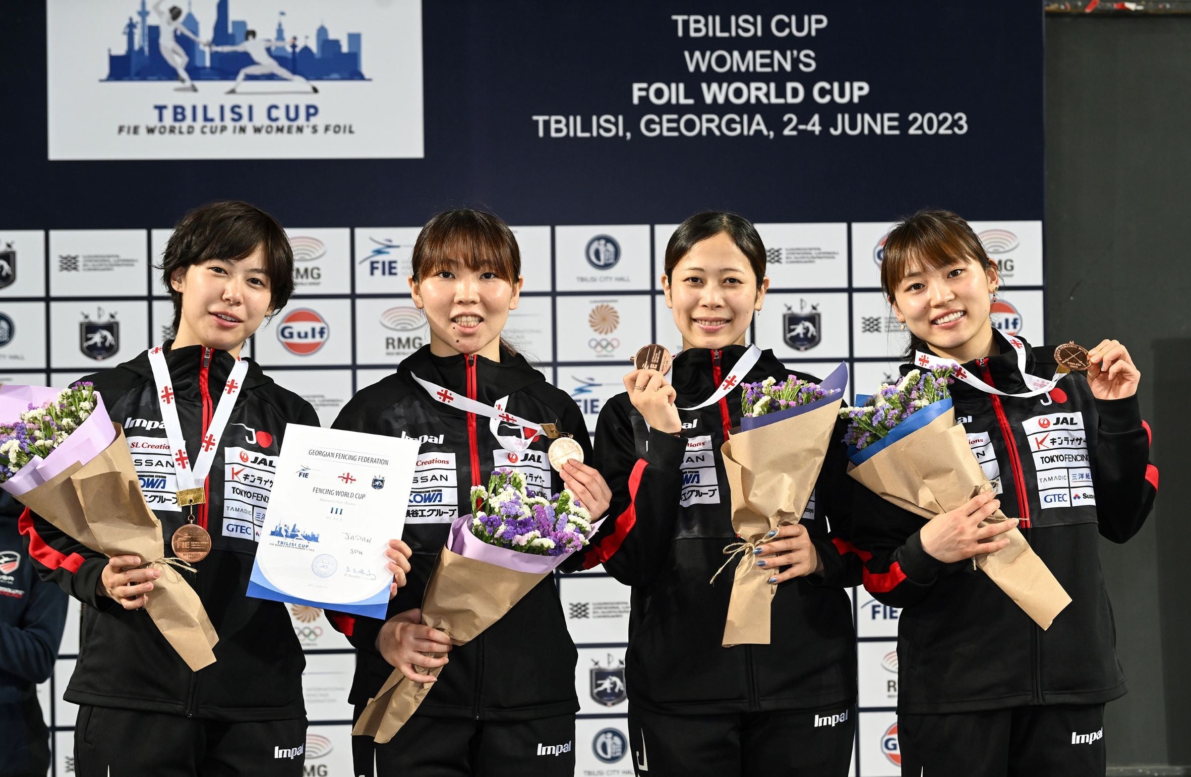 現地時間2023年6月4日(日)にジョージア(トリビシ)で開催された、フェンシングワールドカップにて、女子フルーレ日本チーム(東晟良・上野優佳・菊池小巻・宮脇花綸)が銅メダルを獲得しました!
