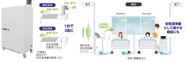 【感染症緊急包括支援交付金対象】汚染物質の拡散、感染リスクを軽減させる「陰圧排気/ 空気清浄機ユニット」の提供開始
