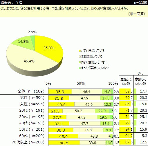 ●宅配便利用の際、再配達削減を「意識している」は8割超!