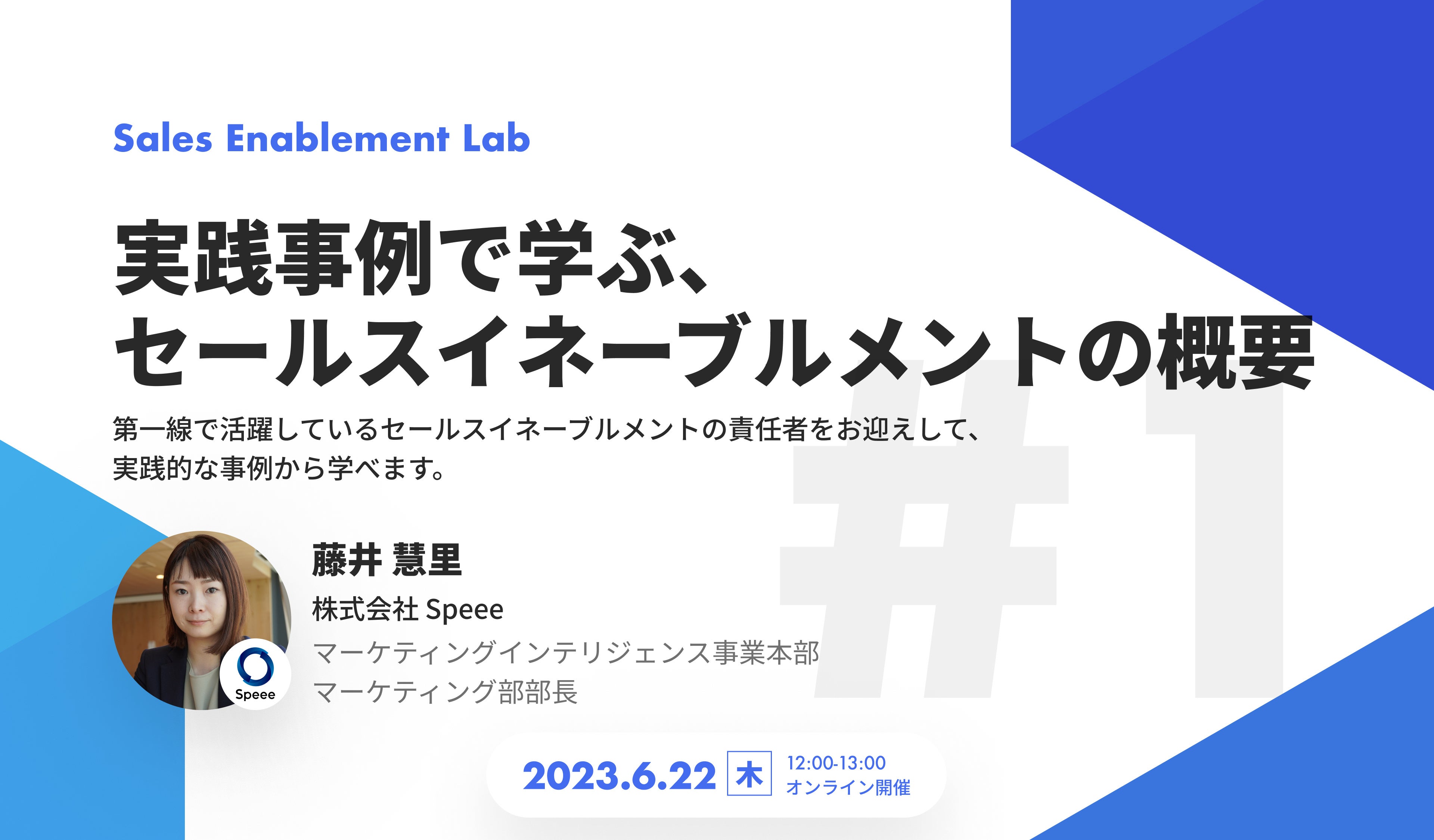本ウェビナーではセールスイネーブルメントの有識者であるSpeee藤井様をお招きして、セールスイネーブルメントの概要と実践事例をわかりやすく解説していくイベントです。