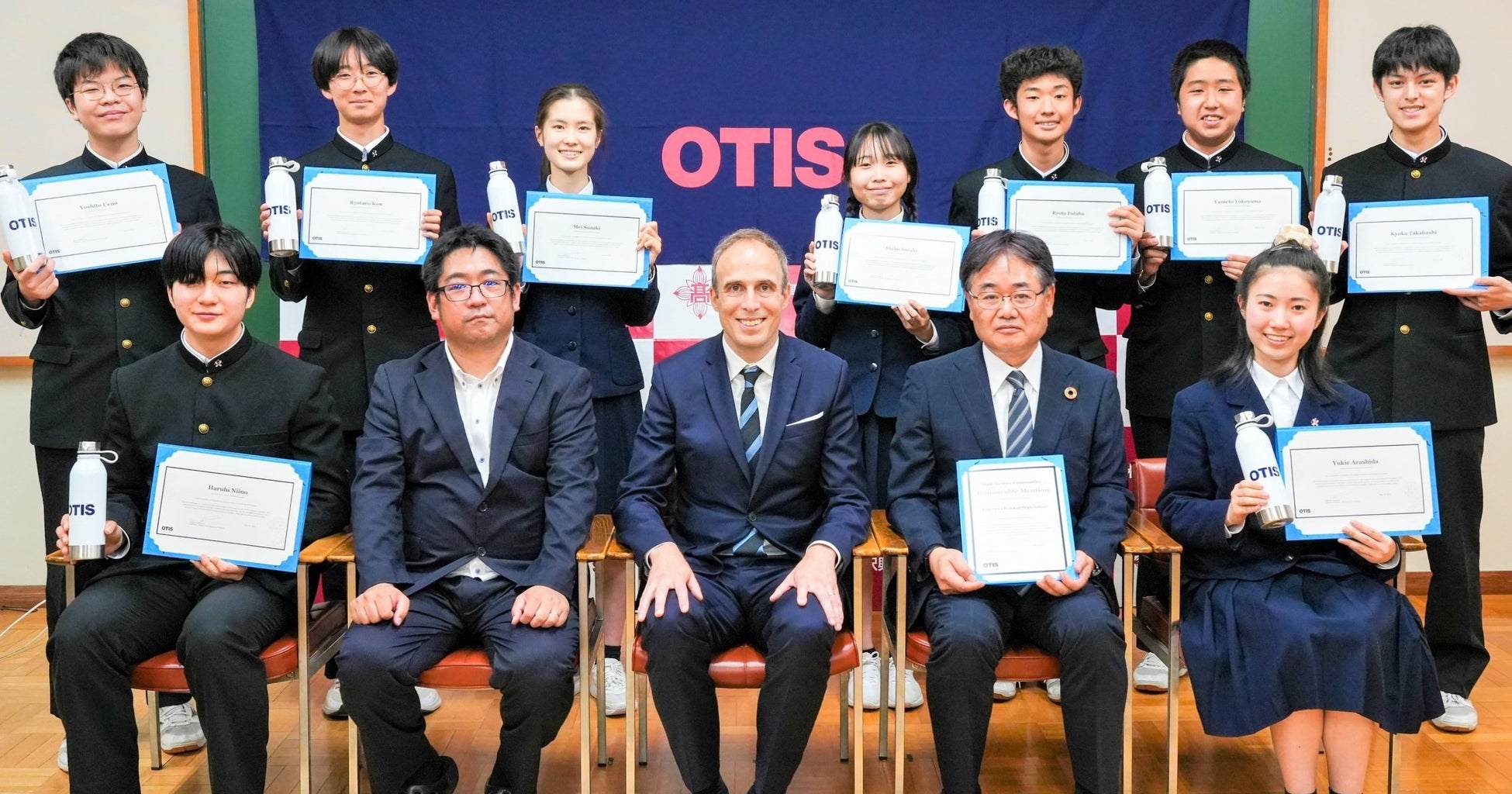 授賞式は2023年5月29日に米沢興譲館高等学校にて執り行われ、日本オーチスの社長であるティボー・ルフェビュールをはじめ、昨年12月から学生チームをサポートしてきた当社の社員たちも集いました。
