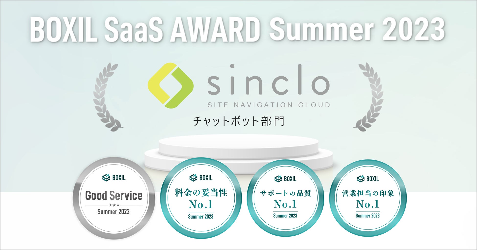 sinclo、「BOXIL SaaS AWARD Summer 2023」チャットボット部門で「Good Service」ほか3つのNo.1に選出