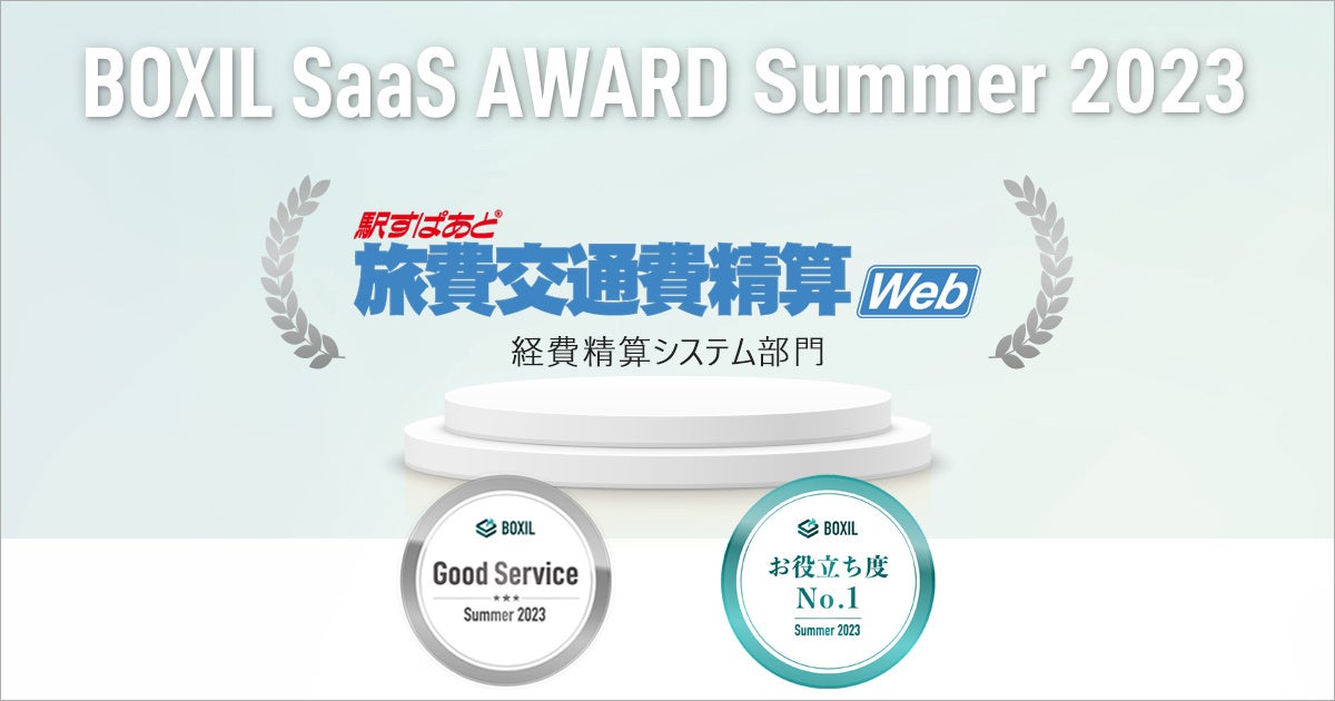 駅すぱあと 旅費交通費精算Web、「BOXIL SaaS AWARD Summer 2023」経費精算システム部門で「Good Service」「お役立ち度No.1」に選出