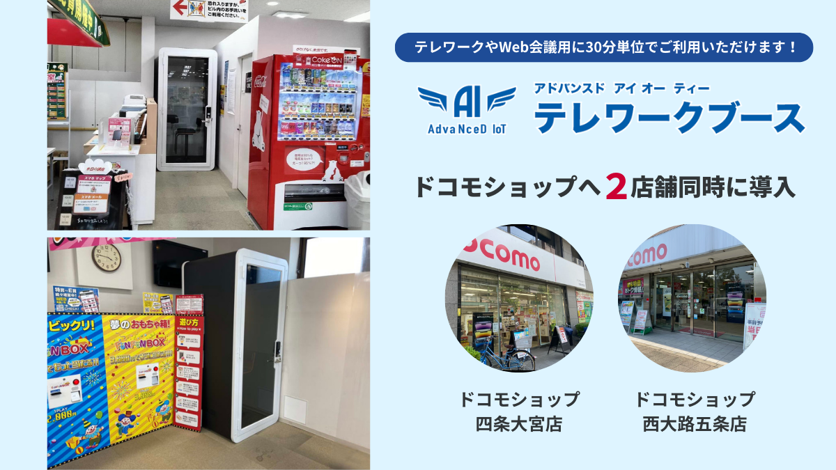 「ドコモショップ四条大宮店」、「ドコモショップ西大路五条店」はどちらも駅から徒歩圏内の便利な立地にあり、通常のドコモショップとして携帯電話の販売や修理、各種手続きなどが行えるほか「AdvaNceD IoT テレワークブース」がご利用いただけます。「AdvaNceD IoT テレワークブース」は面倒な会員登録なしで、どなたでも使いたい時にお気軽にご利用いただけます。※別途、インスタベースのアカウントが必要です。