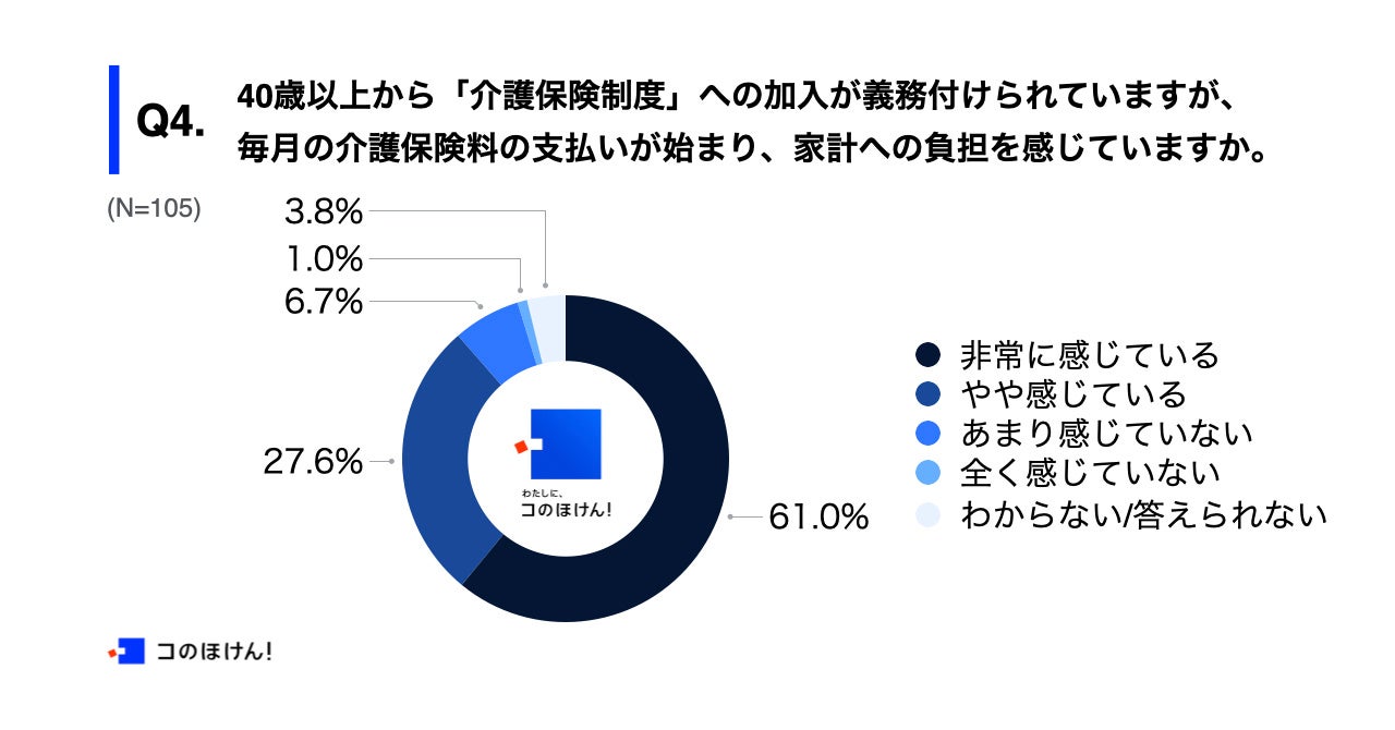 Q4.40歳以上から「介護保険制度」への加入が義務付けられていますが、毎月の介護保険料の支払いが始まり、家計への負担を感じていますか。N=105