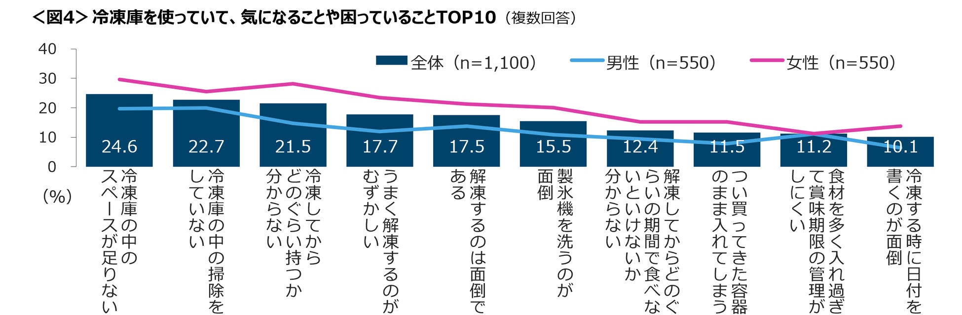 冷凍庫は「冷凍庫のスペースが足りない」が24.6%がTOP。<図4>