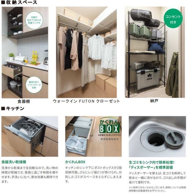 <主な特徴> ●住む人目線で細部にまでこだわった間取り(ピアキッチンやかくれん BOX、各種収納) ●価格以上を実感するハイクラスな設備(ディスポーザー、食洗器、食器棚、床暖房、平置き駐車場) ●シェアリング倉庫、コミュニティラウンジ、キッズルーム、屋外作業スペースなど共用施設が充実。 その中には三芳町の自然を満喫するための仕掛けも。 ●電力・ガスなどのエネルギー消費量を 20%以上削減した ZEH-M Oriented マンション(東武東上線沿線の 大型マンションで初) ●10,000 ㎡超の広大な敷地を贅沢に使ったリゾートライクな外観。 キッチンカースペースも設置(みよし野菜を使ったグルメも楽しめる)。 ●理事会を設置しない新しいマンション管理方式で住人の負担を軽減。 ●リアルとデジタルでつながるご近所交流入居者イベントやアプリでの情報・モノのシェアで、広がるコミュ ニティ。 ●今後の EV(電気自動車)普及に対応するため、敷地内駐車場全エリアで受電可能な空配管を設置。 |