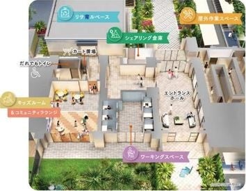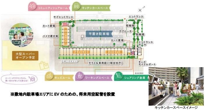 <主な特徴> ●住む人目線で細部にまでこだわった間取り(ピアキッチンやかくれん BOX、各種収納) ●価格以上を実感するハイクラスな設備(ディスポーザー、食洗器、食器棚、床暖房、平置き駐車場) ●シェアリング倉庫、コミュニティラウンジ、キッズルーム、屋外作業スペースなど共用施設が充実。 その中には三芳町の自然を満喫するための仕掛けも。 ●電力・ガスなどのエネルギー消費量を 20%以上削減した ZEH-M Oriented マンション(東武東上線沿線の 大型マンションで初) ●10,000 ㎡超の広大な敷地を贅沢に使ったリゾートライクな外観。 キッチンカースペースも設置(みよし野菜を使ったグルメも楽しめる)。 ●理事会を設置しない新しいマンション管理方式で住人の負担を軽減。 ●リアルとデジタルでつながるご近所交流入居者イベントやアプリでの情報・モノのシェアで、広がるコミュ ニティ。 ●今後の EV(電気自動車)普及に対応するため、敷地内駐車場全エリアで受電可能な空配管を設置。 |