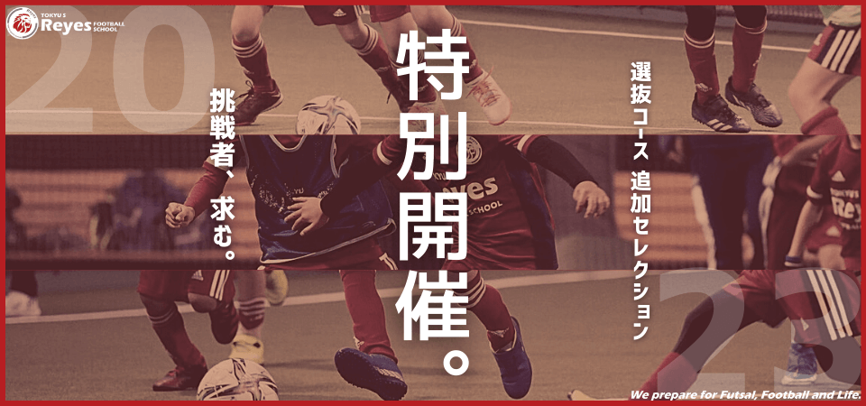 ※チャレンジクラスとは、選抜コースの入り口となるクラスとなります。チャレンジクラスに所属後に一定期間のプレーを高く評価された後に、アドバンスクラス、セレクトクラスとクラスを上げていく推薦制度・リフレッシュ選考会というものがございます。活動は平日トレーニングとなります。従って、所属されるクラブでの活動が主となります。
