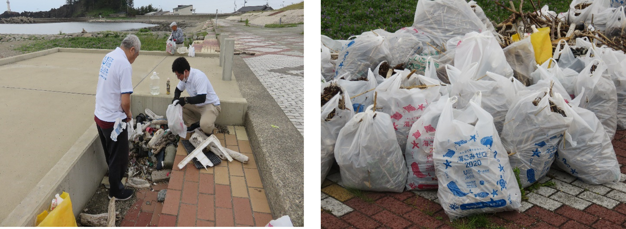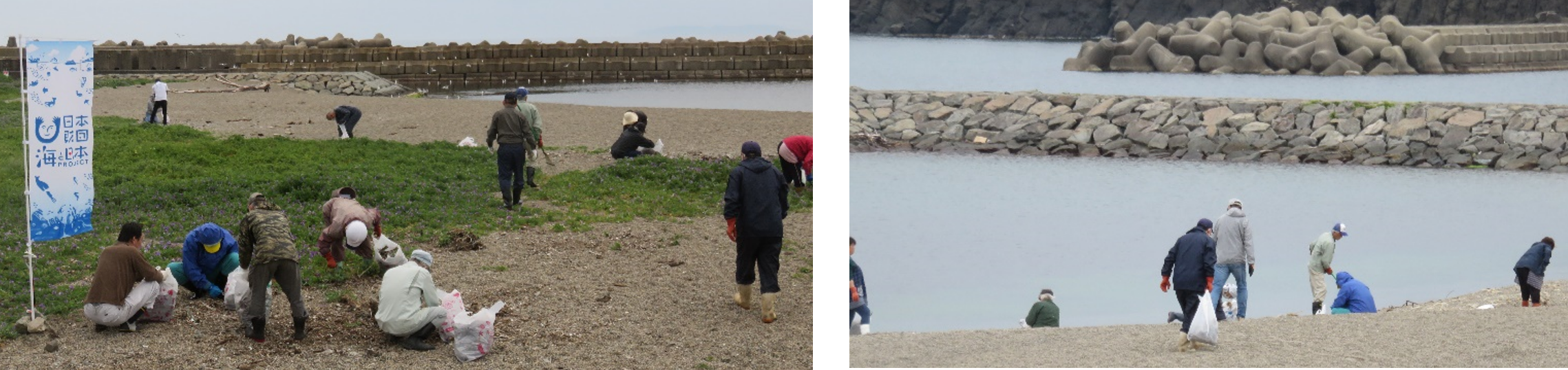 例年、地区内5~6か所の清掃を実施しており、今年は、天候の影響により、参加者が減少したものの、およそ260名を超える参加者に協力いただき、約150袋以上の海ごみを集めることができました。