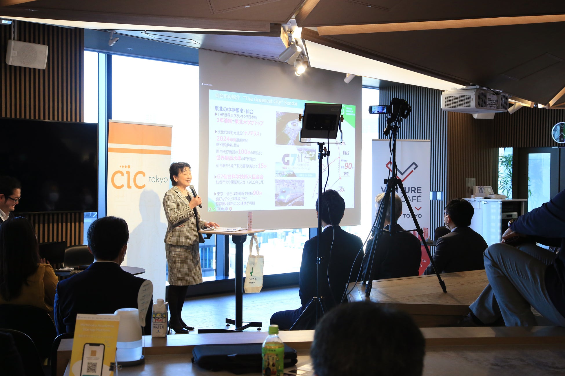 CIC Tokyoで仙台市の施策を紹介する郡和子仙台市長