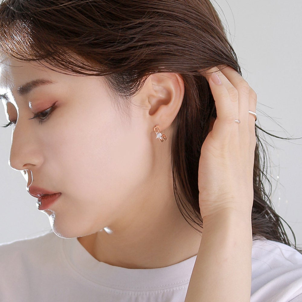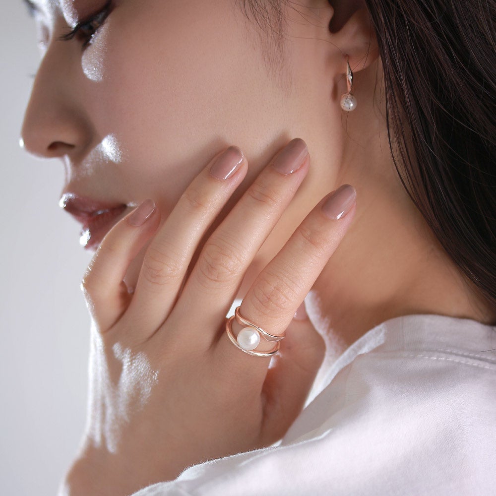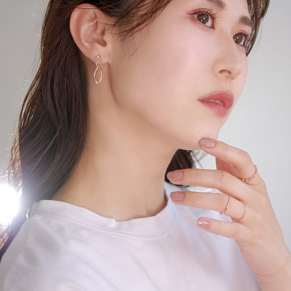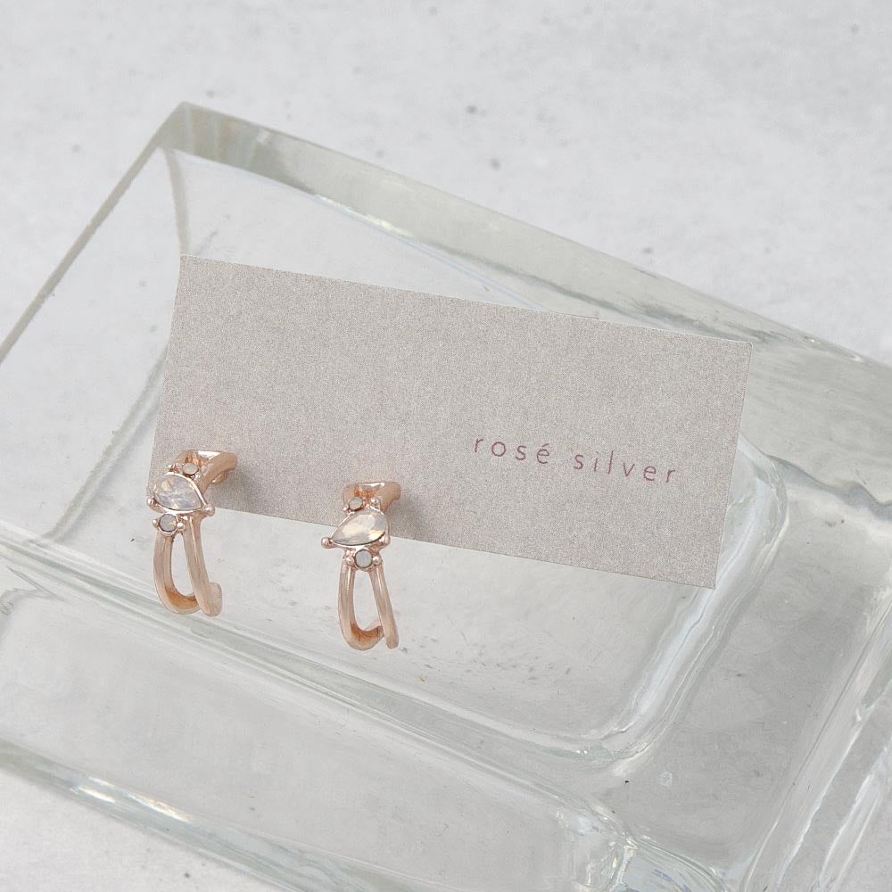 メタルのフェミニンな曲線に、パールやオパール色の石をあしらった、肌なじみの良い、エレガンスなデザインが特徴。華やかさを演出する一方、柔らかな印象を与えるロゼカラーのアクセサリーは日常使いから特別なシーンにも。金属アレルギーが出にくいニッケルフリーで、お肌に優しい作りになっています。