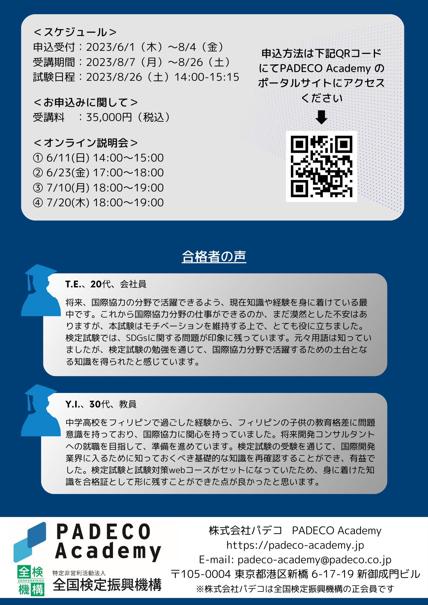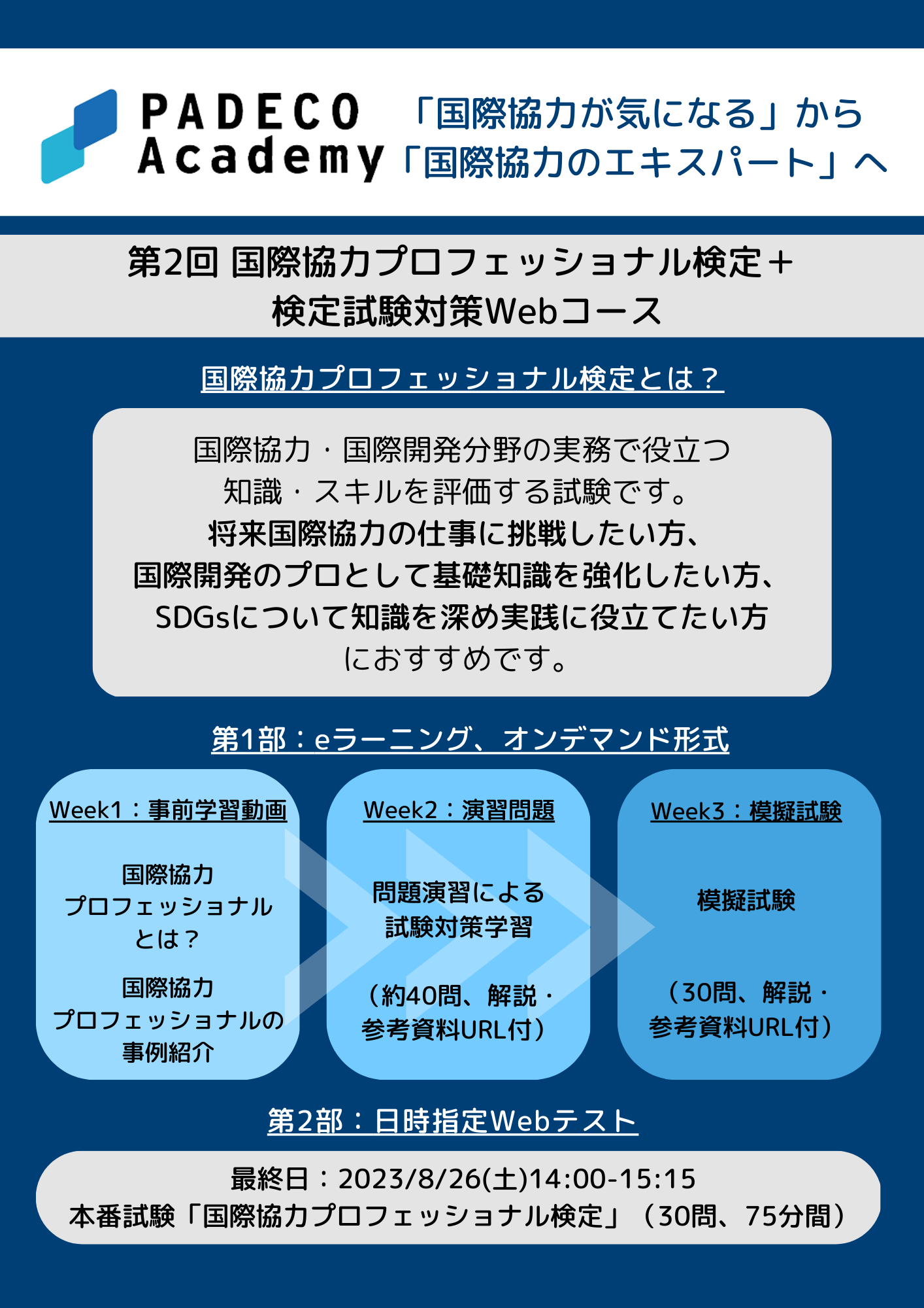 PADECO Academy®では、国際協力・国際開発分野のプロとして基礎知識を強化したい方を対象とした「国際協力プロフェッショナル検定®」をE-ラーニングで実施しております。