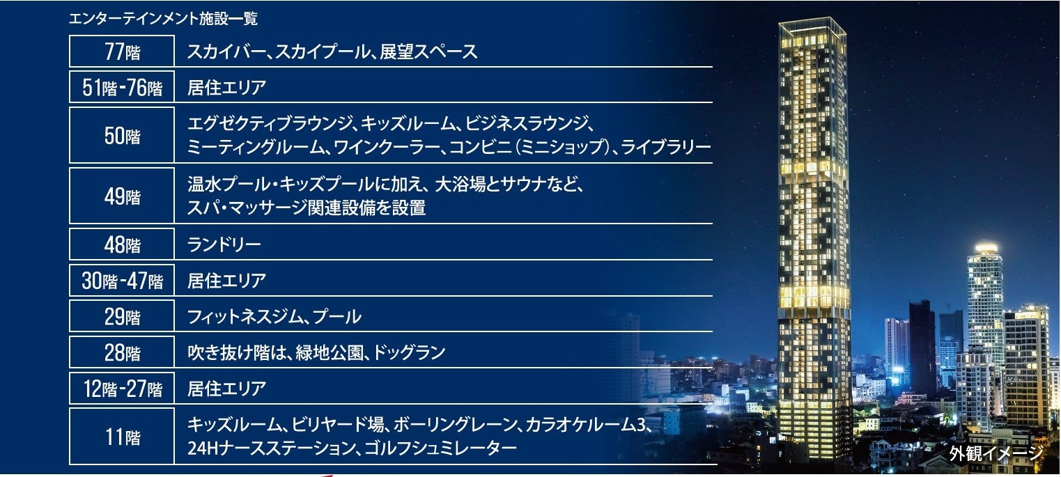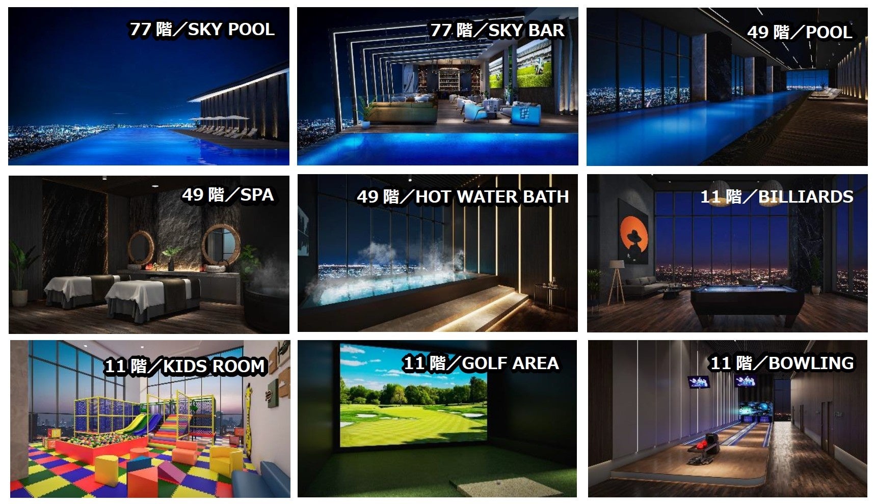 日本国内のタワーマンションを凌ぐ、エンタメ性の高い数々の共用施設を備え、建築から管理までワンストップでサービスを提供する。