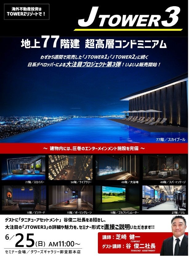 「谷 俊二社長」をお招きし「J TOWER3購入・投資セミナー」の開催決定