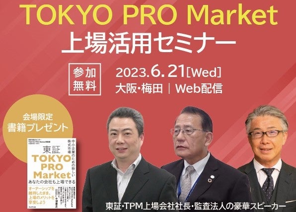 東京プロマーケットへの新規上場企業数が過去最多を更新し、関西エリアからも上場企業が相次いで誕生しています。6月21日(水)午後3時から日本M&Aセンター西日本支社で開催するセミナーには、東京証券取引所と上場企業、監査法人からゲストをお招きし、東京プロマーケットの特徴や上場準備等をご紹介します。オンラインでも同時配信します。この機会に経営戦略の1つとして、東京プロマーケット上場を考えてみてはいかがでしょうか。