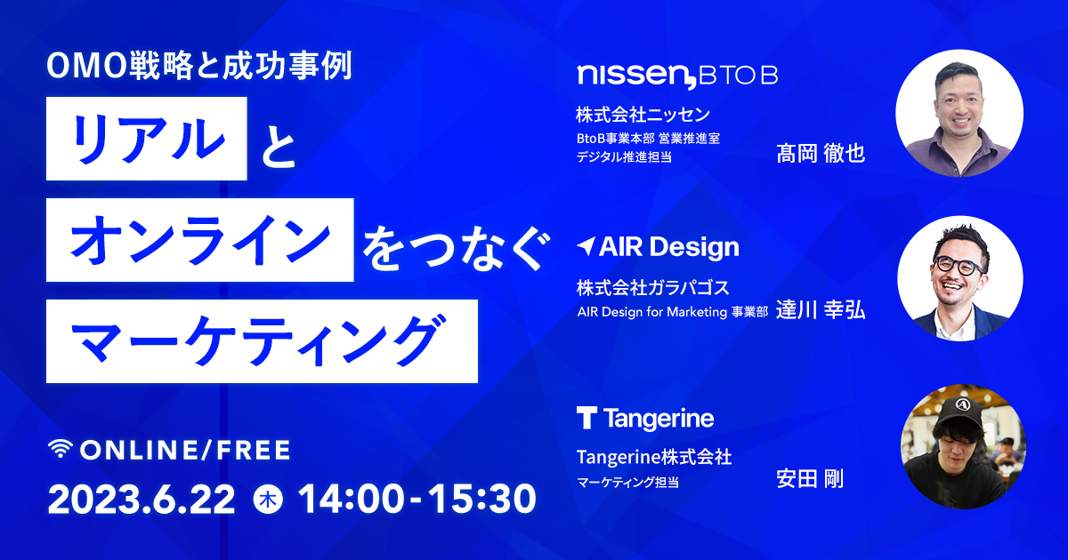 本セミナーでは、Web集客に強みを持つAIR Design・ECに強みを持つ株式会社ニッセン・アプリに強みを持つTangerine株式会社の3社が、LTVを最大化するためのオンラインとオフラインを横断したOMO戦略のポイントと成功事例についてご紹介します。