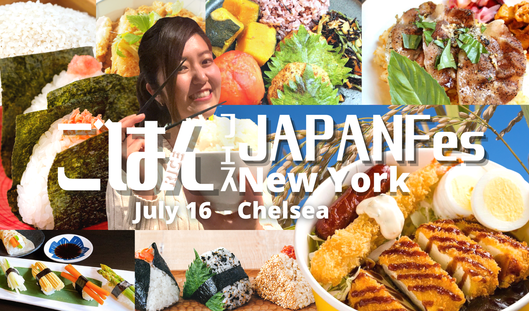 7月16日(土)開催の今回は、ラーメンやお好み焼きといった日本食を楽しめる通常のJAPAN Fesに加え、日本のソウルフードである「ごはん(日本米)」を在ニューヨークの日本食ファンに味わってもらいその魅力を知ってもらうべく、在ニューヨーク日本国総領事館およびJETRO(日本貿易振興機構)ニューヨーク事務所と共催した「GOHAN Fes」エリアを開設します。
