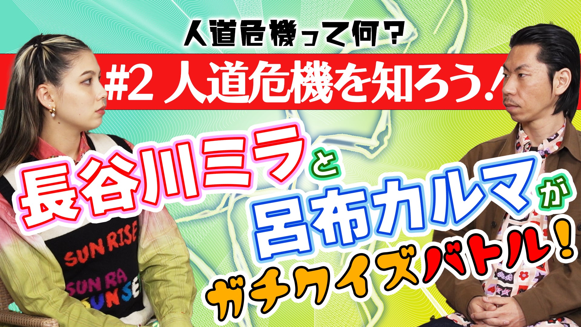 ナビゲーターのモデル長谷川ミラとスペシャルコメンテーターの人気ラッパー呂布カルマがゲストとともに難民問題を真剣に考えます。