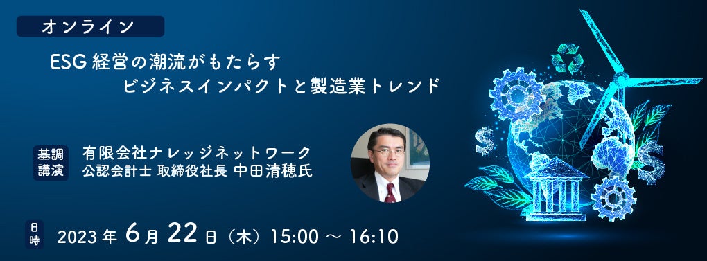 本セミナーでは、有限会社ナレッジネットワーク 公認会計士 中田清穂氏よりESG経営に対する製造業の取り組み事例を、また、それをシステムの側面から支えるソリューションをスーパーストリーム株式会社 村井美咲氏とビジネスエンジニアリング株式会社 行司正成氏よりそれぞれ紹介します。