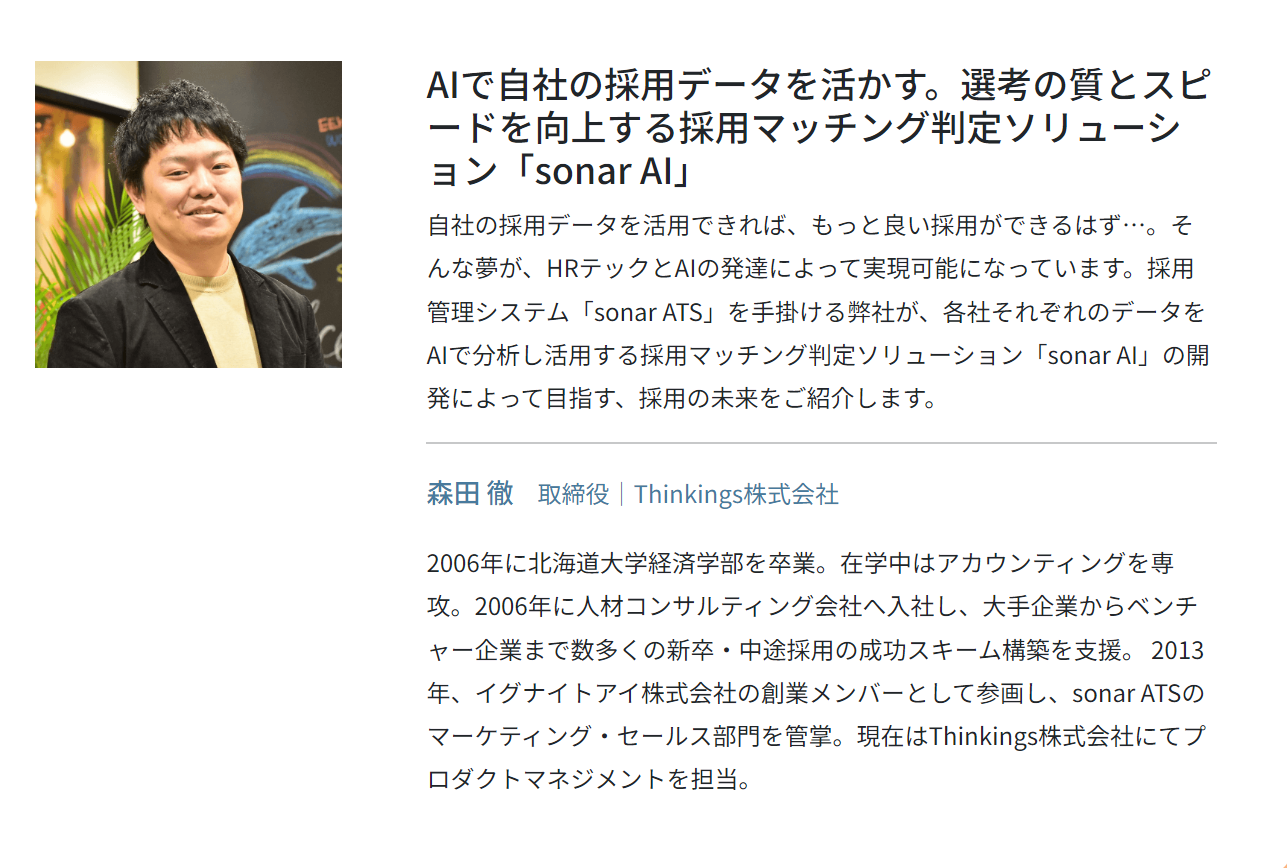 ④AIで自社の採用データを活かす。選考の質とスピードを向上する採用マッチング判定ソリューション「sonar AI」