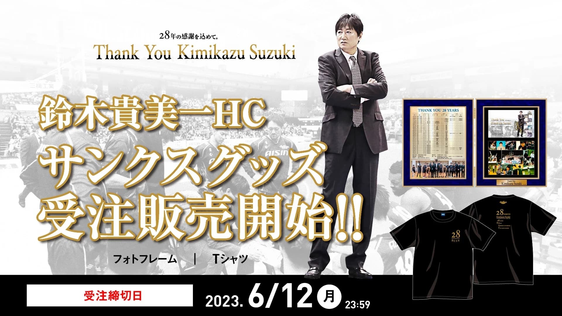 1995~2023年、28年間の長きにわたりチームを率いて、数多の栄光をもたらし、多くの名選手をクラブから輩出し続けてくださった鈴木貴美一HCに心より感謝の気持ちを込めて、サンクスグッズを発売いたします。
