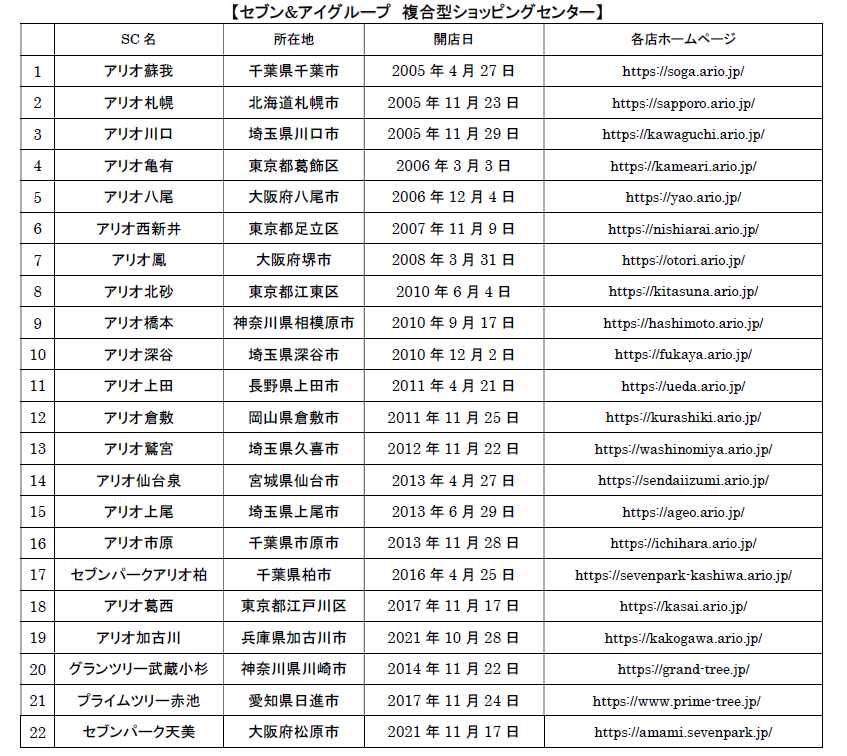 アリオ・グランツリー武蔵小杉・プライムツリー赤池・セブンパーク天美の新しい展開にご期待ください。
