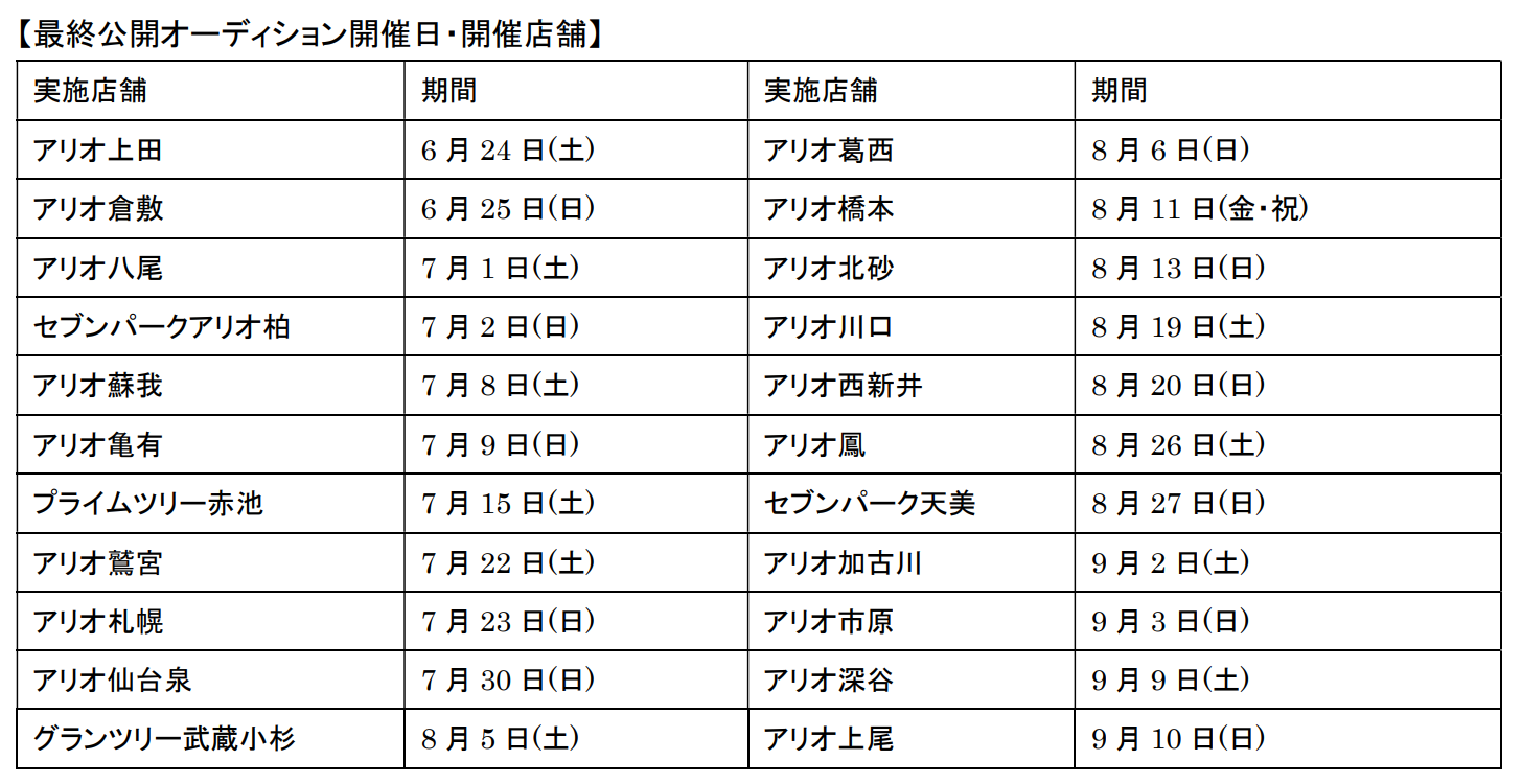 ※アリオ札幌、アリオ北砂は6月23日(金)のみの単日販売となります。