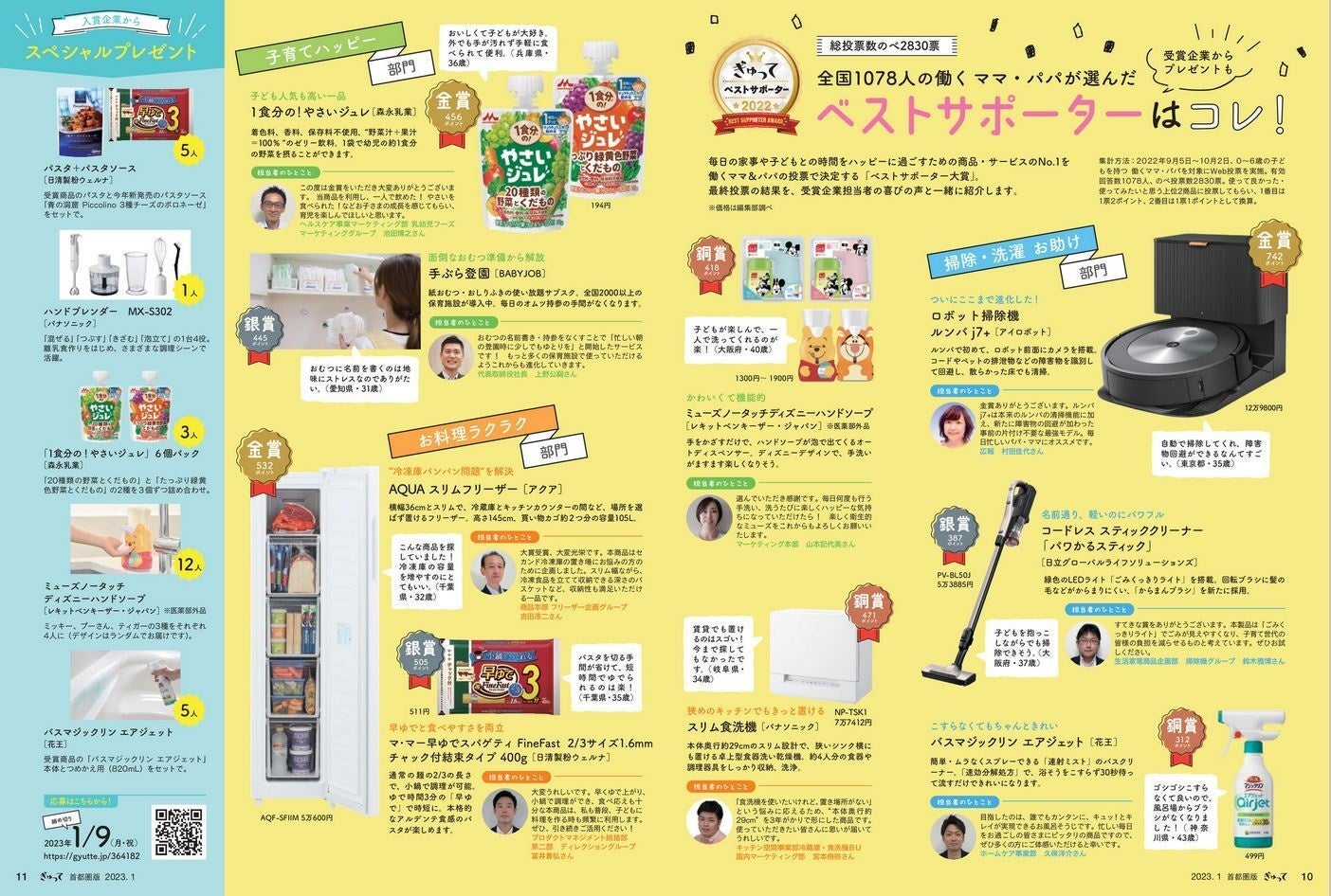 2022年度は、【お料理ラクラク部門】…「AQUA スリムフリーザー(アクア)」、【掃除・洗濯 お助け部門】…「ロボット掃除機ルンバ j7+(アイロボット)」、【子育てハッピー部門】…「1食分の!やさいジュレ(森永乳業)」が受賞。