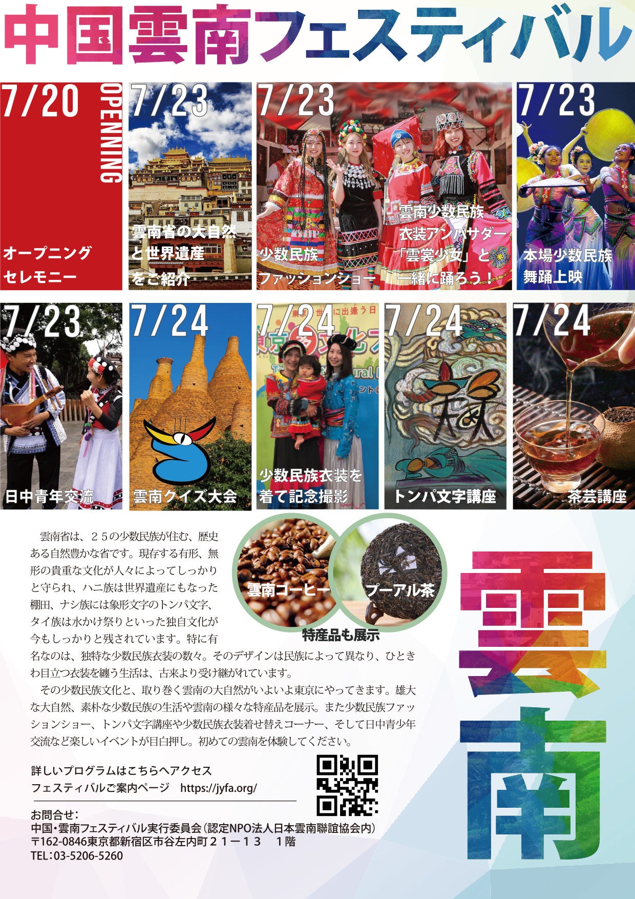 このイベントは、広く一般の方々に雲南省の持つ少数民族文化や数々の世界遺産、特産物等をご紹介し、雲南省を知っていただくと共に、少数民族ファッションショーやプーアル茶講座、雲南クイズ大会、少数民族への教育支援活動の紹介や、日中青少年交流など沢山のイベントが目白押し!日本で初めて行われる雲南フェスティバルです。入場料は無料。