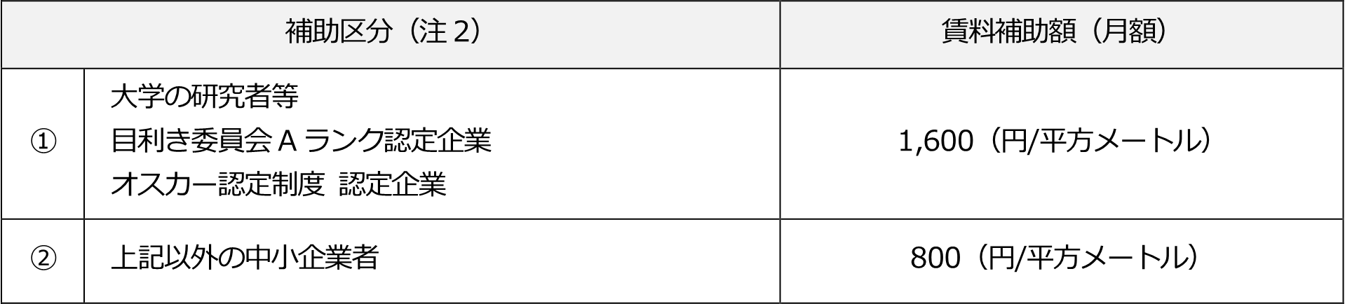 (1ヶ月当たりの補助金額・上限100平方メートル)
