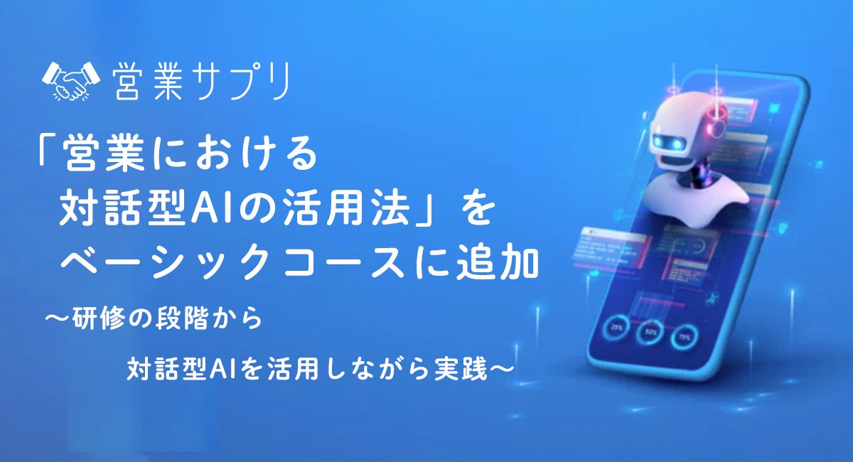 「すべての営業を売れる営業に」をスローガンに、営業パーソン・営業管理職層を対象としたオンライン研修事業を展開する株式会社サプリ(本社:東京都千代田区、代表取締役:酒井 雅弘)は 営業職のスキルアップを目指す方を対象としたベーシックコースに、新たなコンテンツ「営業における対話型AIの活用法」を追加しました。